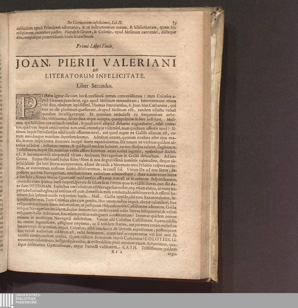 Joannis Pierii Valeriani Bellunensis De Literatorum Infelicitate. Libri Duo.