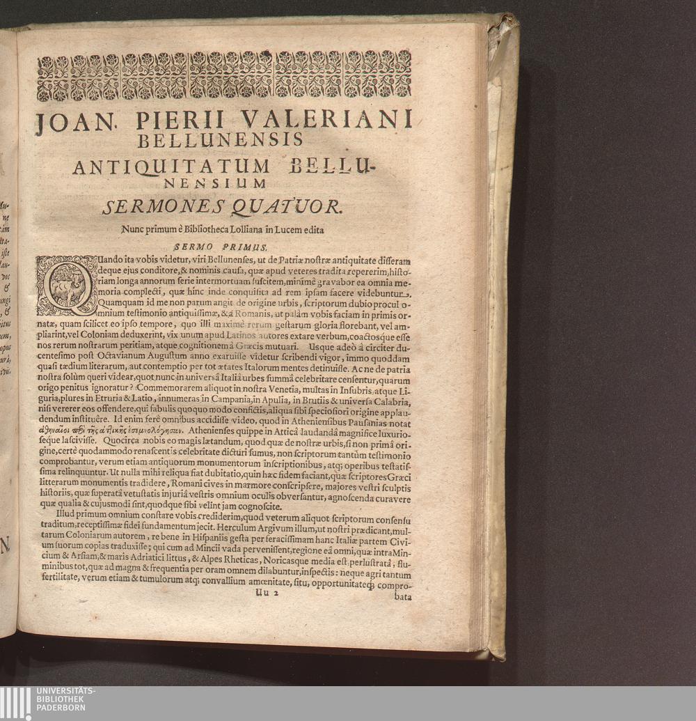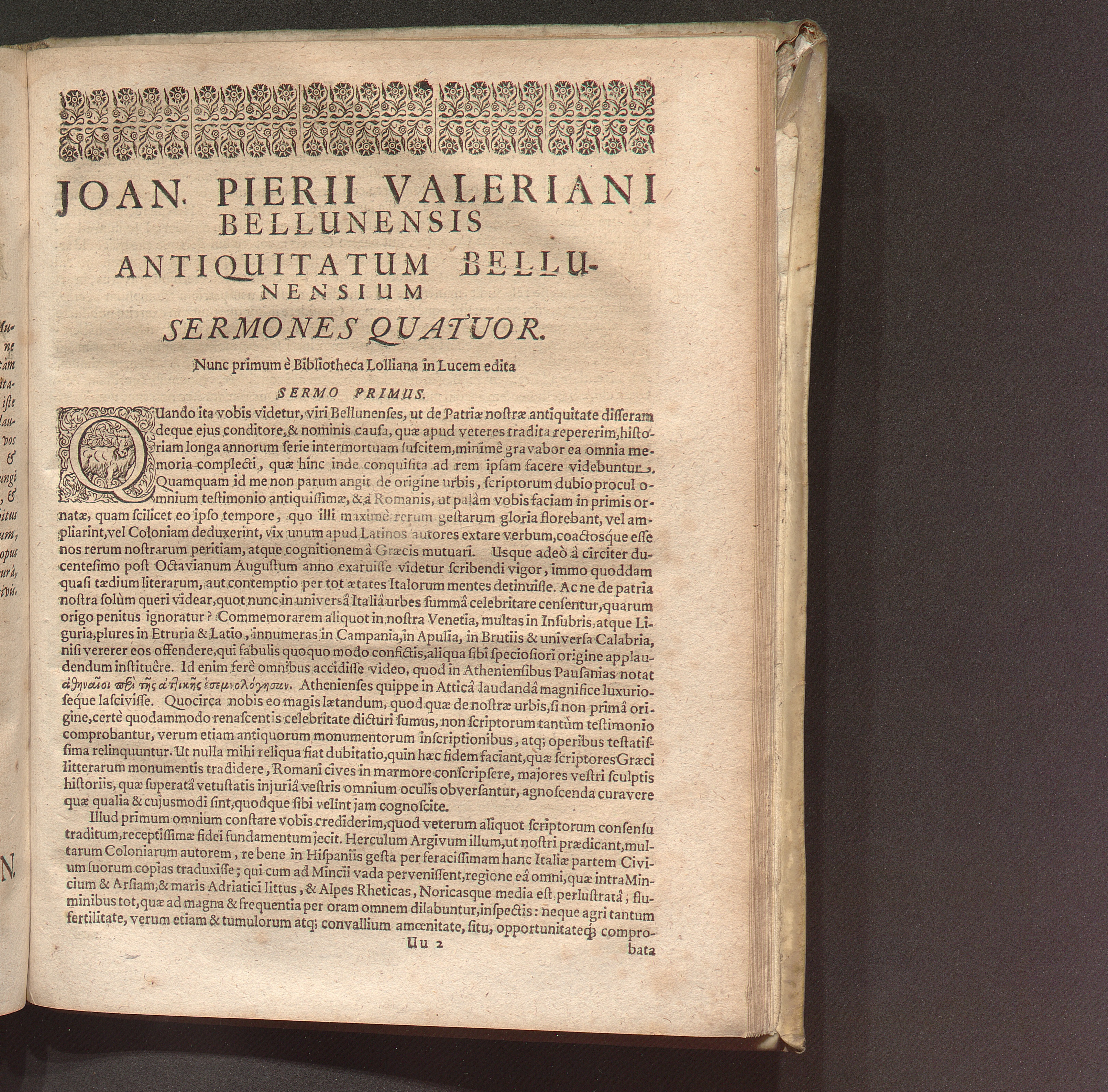 Joannis Pierii Valeriani Bellunensis Antiquitatum Bellunensium Sermones Quatuor.