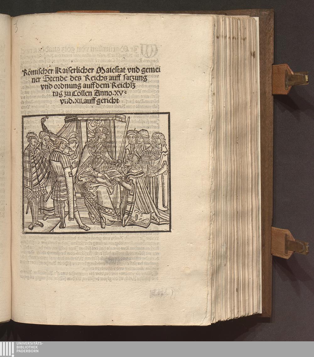Römischer Kaiserlicher Maiestat vnd gemei||ner Stende des Reichs auff satzung || vnd ordnung auff dem Reichsz||tag zu Cöllen Anno. XVc || vnd. XII. auff gericht
