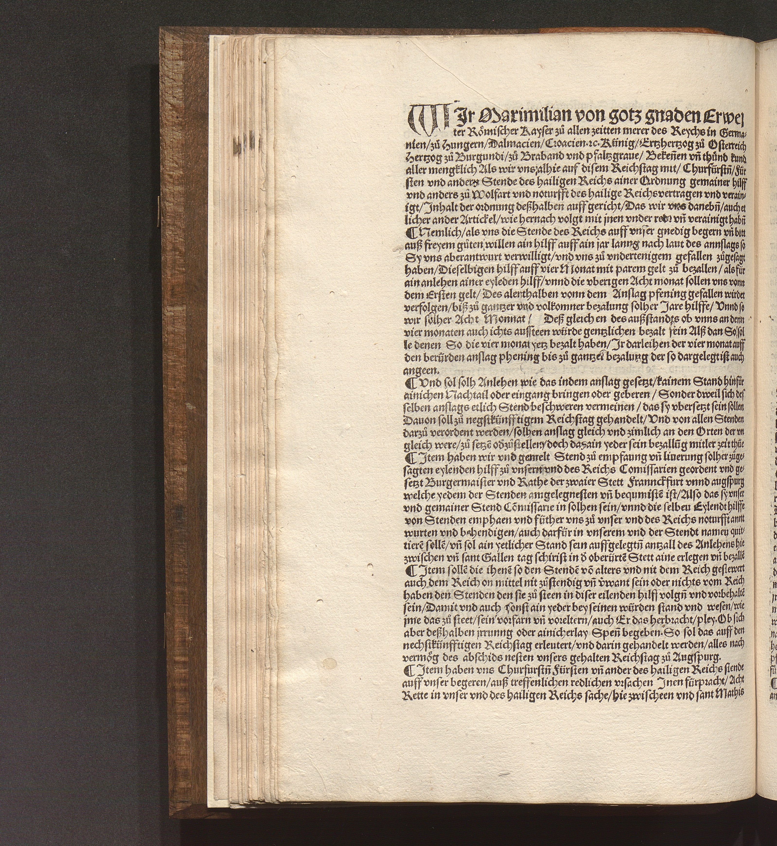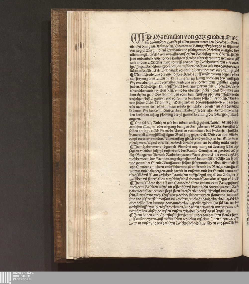 Wjr Maximilian von gotz gnaden Erwelter Roemischer Kayser zů allen zeit[e]n merer des Reichs Germanie[n] zů Hugern. Dalmacien. zů Croacie[n] [et]c Künig ...