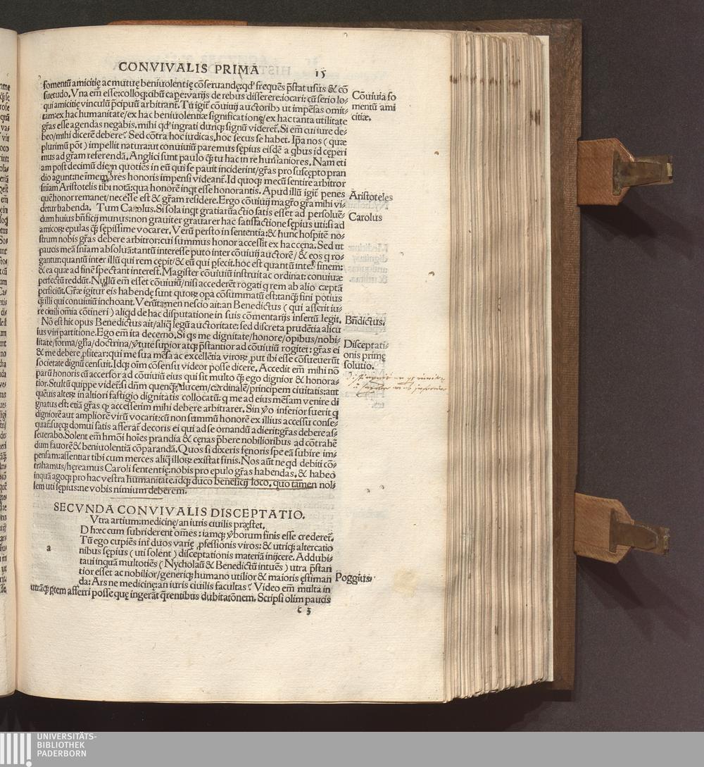 Poggii Florentini Oratoris || Clarissimi, Ac Sedis Apo.|| Secretarii Opervm || : Primae partis contenta. Historia disceptatiua de Avaricia. Histori[a]e disceptatiu[a]e Convivales tres. ... Asinvs Lvciani p[er] Poggiu[m] e gr[a]eco in latinu[m] versus. ... Secundae partis contenta. Liber Epistolarvm ... De laude Rvris siue rei rusticae. ... Finem ... Facetiarvm sales ponunt. ... Indice ... desuper confecto ... / [hrsg. von Thomas D. Avcvparivs]