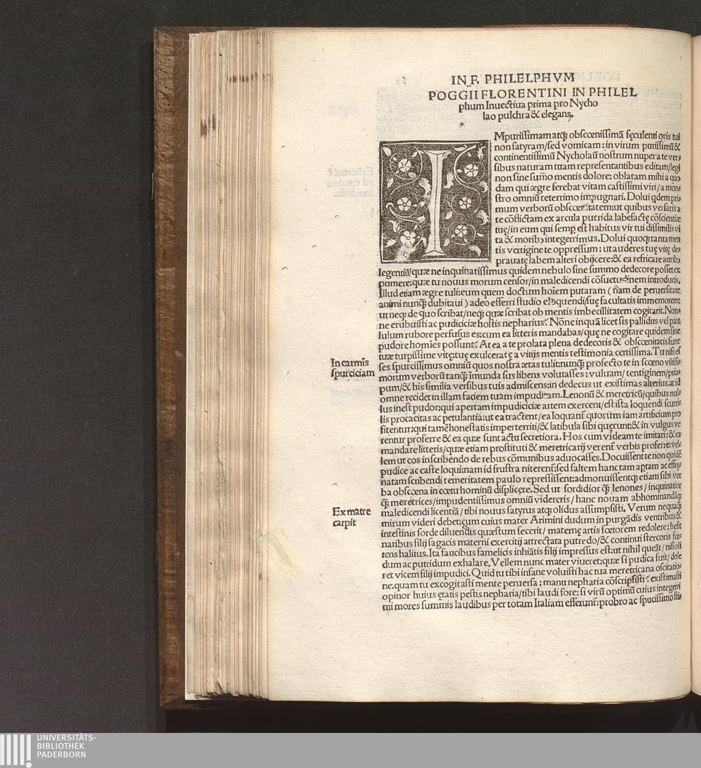 Poggii Florentini Oratoris || Clarissimi, Ac Sedis Apo.|| Secretarii Opervm || : Primae partis contenta. Historia disceptatiua de Avaricia. Histori[a]e disceptatiu[a]e Convivales tres. ... Asinvs Lvciani p[er] Poggiu[m] e gr[a]eco in latinu[m] versus. ... Secundae partis contenta. Liber Epistolarvm ... De laude Rvris siue rei rusticae. ... Finem ... Facetiarvm sales ponunt. ... Indice ... desuper confecto ... / [hrsg. von Thomas D. Avcvparivs]