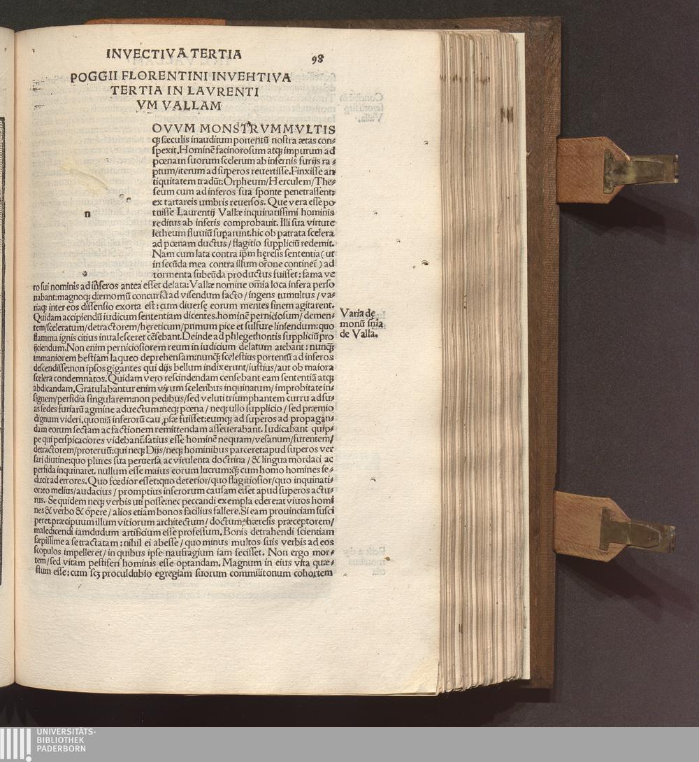 Poggii Florentini Oratoris || Clarissimi, Ac Sedis Apo.|| Secretarii Opervm || : Primae partis contenta. Historia disceptatiua de Avaricia. Histori[a]e disceptatiu[a]e Convivales tres. ... Asinvs Lvciani p[er] Poggiu[m] e gr[a]eco in latinu[m] versus. ... Secundae partis contenta. Liber Epistolarvm ... De laude Rvris siue rei rusticae. ... Finem ... Facetiarvm sales ponunt. ... Indice ... desuper confecto ... / [hrsg. von Thomas D. Avcvparivs]