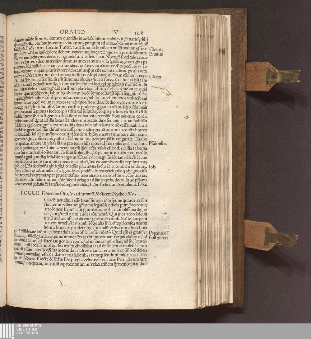 Poggii Florentini Oratoris || Clarissimi, Ac Sedis Apo.|| Secretarii Opervm || : Primae partis contenta. Historia disceptatiua de Avaricia. Histori[a]e disceptatiu[a]e Convivales tres. ... Asinvs Lvciani p[er] Poggiu[m] e gr[a]eco in latinu[m] versus. ... Secundae partis contenta. Liber Epistolarvm ... De laude Rvris siue rei rusticae. ... Finem ... Facetiarvm sales ponunt. ... Indice ... desuper confecto ... / [hrsg. von Thomas D. Avcvparivs]