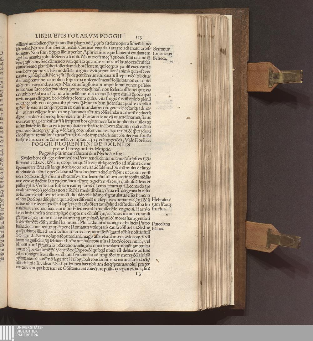 Poggii Florentini Oratoris || Clarissimi, Ac Sedis Apo.|| Secretarii Opervm || : Primae partis contenta. Historia disceptatiua de Avaricia. Histori[a]e disceptatiu[a]e Convivales tres. ... Asinvs Lvciani p[er] Poggiu[m] e gr[a]eco in latinu[m] versus. ... Secundae partis contenta. Liber Epistolarvm ... De laude Rvris siue rei rusticae. ... Finem ... Facetiarvm sales ponunt. ... Indice ... desuper confecto ... / [hrsg. von Thomas D. Avcvparivs]
