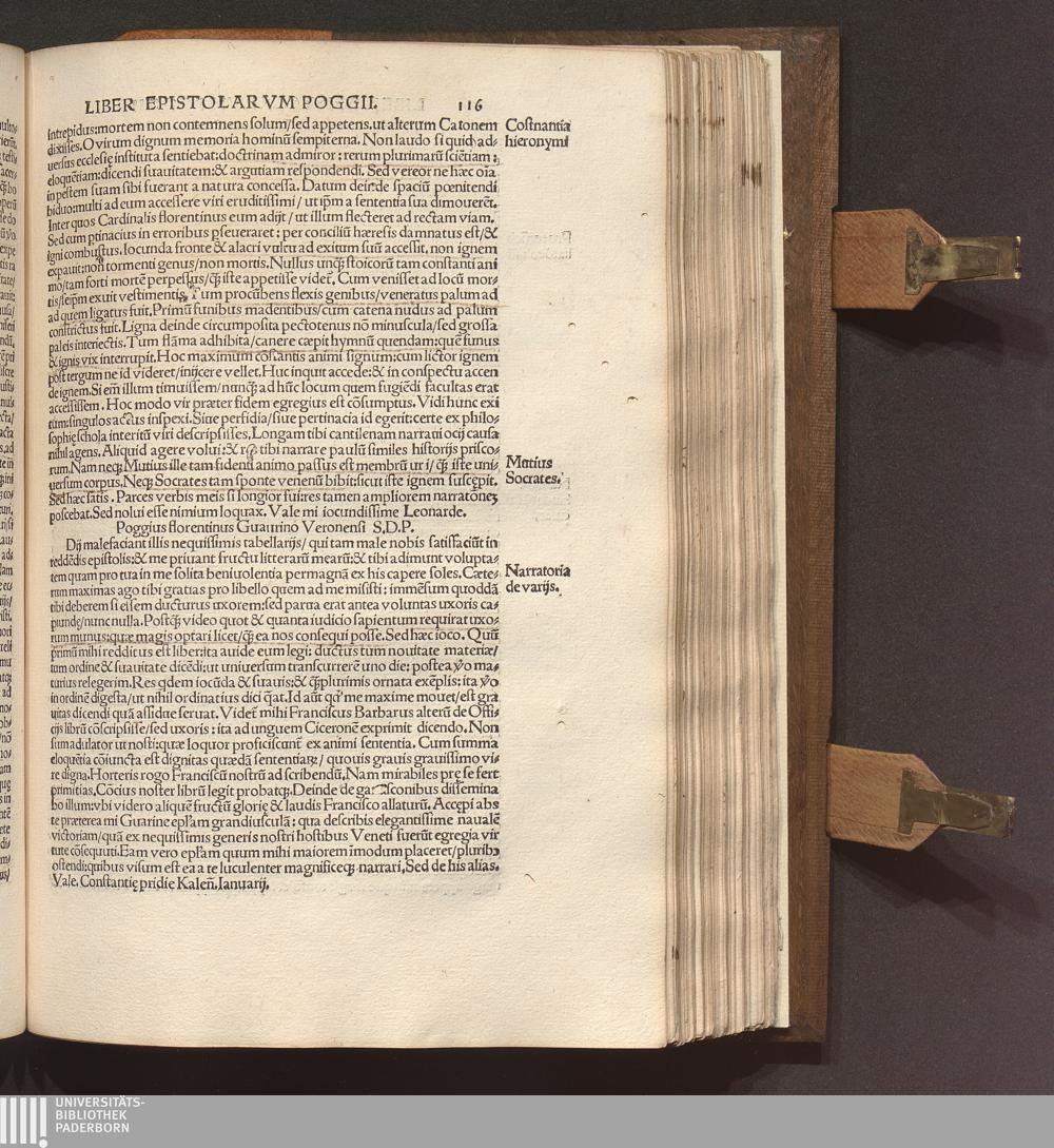 Poggii Florentini Oratoris || Clarissimi, Ac Sedis Apo.|| Secretarii Opervm || : Primae partis contenta. Historia disceptatiua de Avaricia. Histori[a]e disceptatiu[a]e Convivales tres. ... Asinvs Lvciani p[er] Poggiu[m] e gr[a]eco in latinu[m] versus. ... Secundae partis contenta. Liber Epistolarvm ... De laude Rvris siue rei rusticae. ... Finem ... Facetiarvm sales ponunt. ... Indice ... desuper confecto ... / [hrsg. von Thomas D. Avcvparivs]