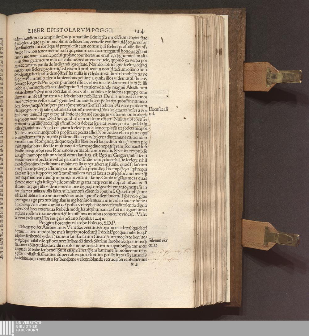 Poggii Florentini Oratoris || Clarissimi, Ac Sedis Apo.|| Secretarii Opervm || : Primae partis contenta. Historia disceptatiua de Avaricia. Histori[a]e disceptatiu[a]e Convivales tres. ... Asinvs Lvciani p[er] Poggiu[m] e gr[a]eco in latinu[m] versus. ... Secundae partis contenta. Liber Epistolarvm ... De laude Rvris siue rei rusticae. ... Finem ... Facetiarvm sales ponunt. ... Indice ... desuper confecto ... / [hrsg. von Thomas D. Avcvparivs]