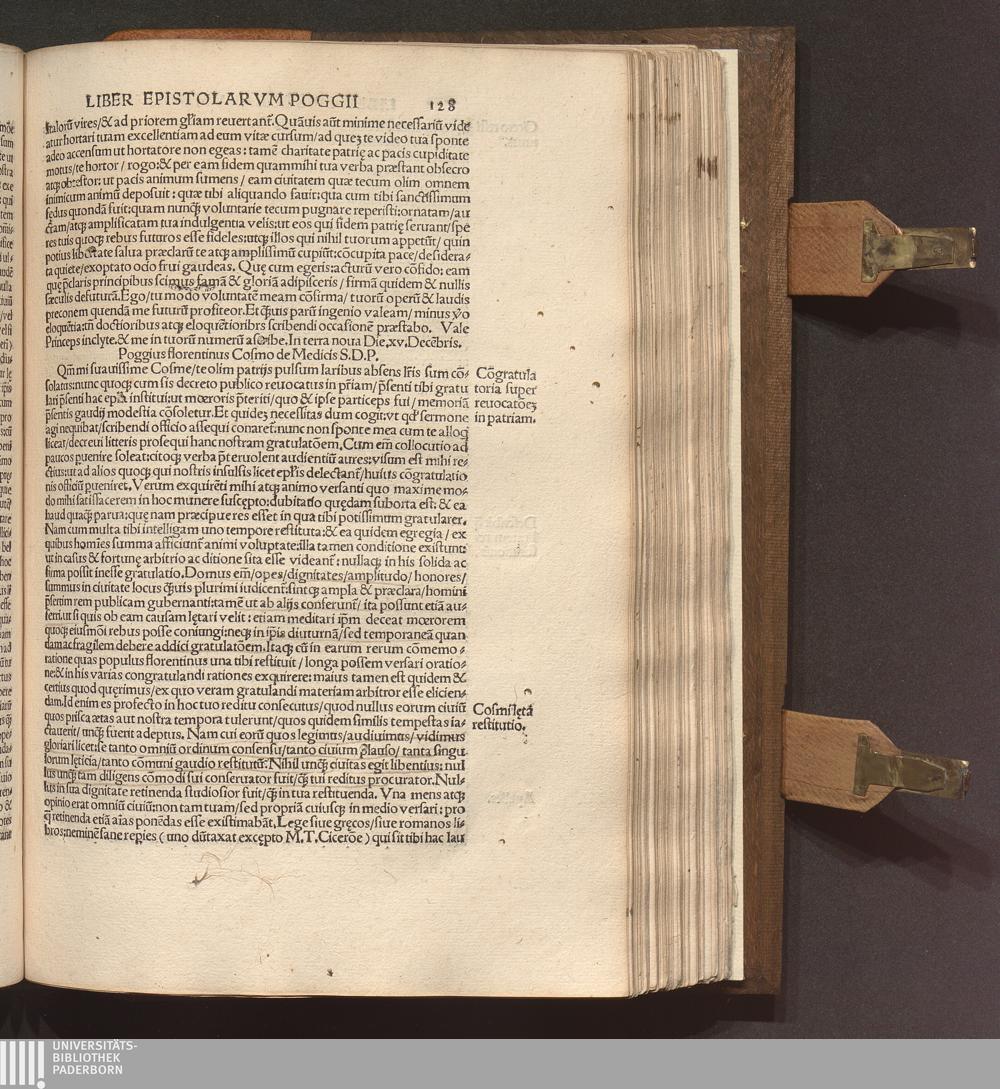 Poggii Florentini Oratoris || Clarissimi, Ac Sedis Apo.|| Secretarii Opervm || : Primae partis contenta. Historia disceptatiua de Avaricia. Histori[a]e disceptatiu[a]e Convivales tres. ... Asinvs Lvciani p[er] Poggiu[m] e gr[a]eco in latinu[m] versus. ... Secundae partis contenta. Liber Epistolarvm ... De laude Rvris siue rei rusticae. ... Finem ... Facetiarvm sales ponunt. ... Indice ... desuper confecto ... / [hrsg. von Thomas D. Avcvparivs]