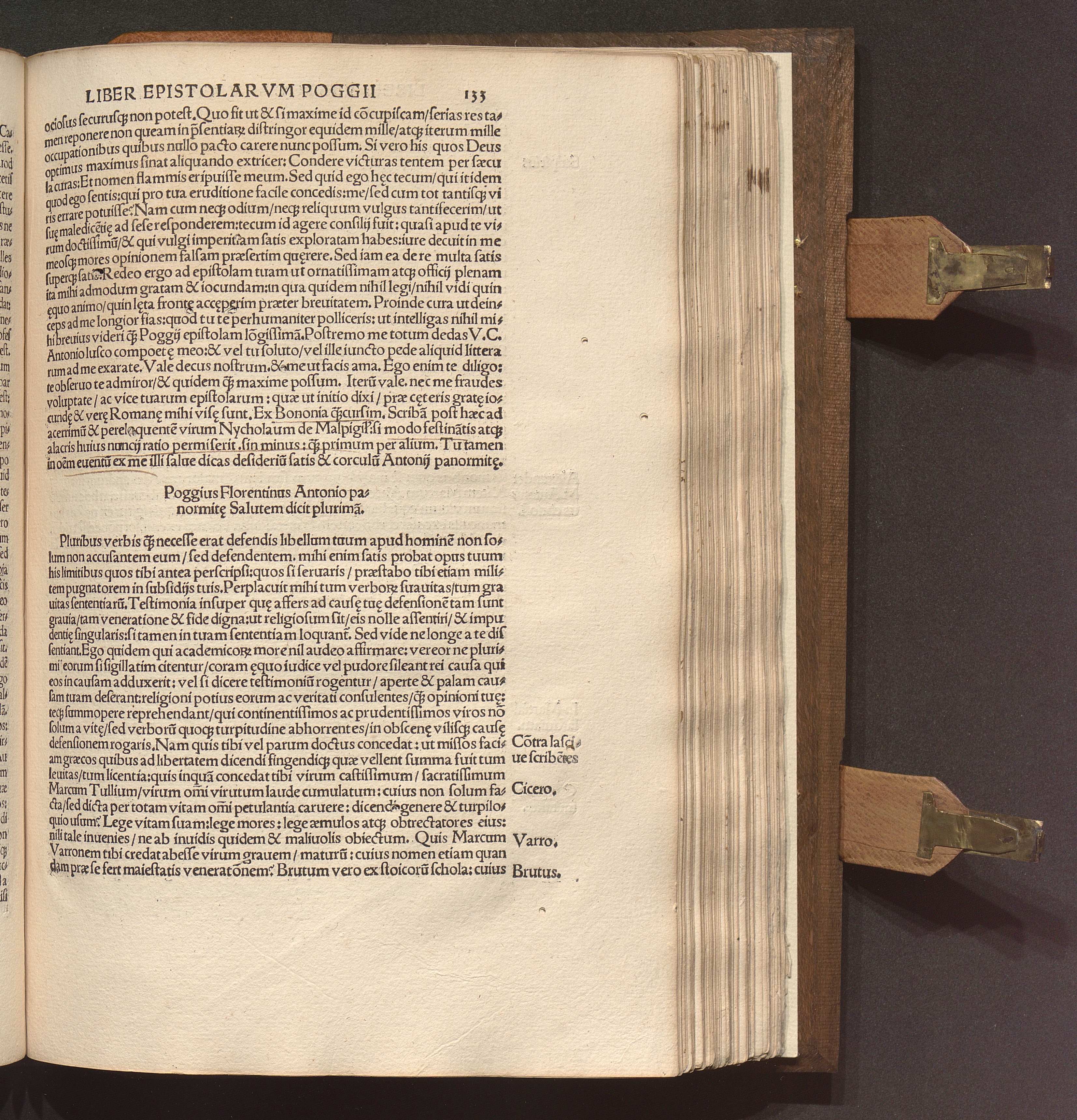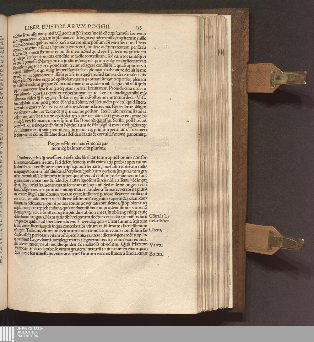 Poggii Florentini Oratoris || Clarissimi, Ac Sedis Apo.|| Secretarii Opervm || : Primae partis contenta. Historia disceptatiua de Avaricia. Histori[a]e disceptatiu[a]e Convivales tres. ... Asinvs Lvciani p[er] Poggiu[m] e gr[a]eco in latinu[m] versus. ... Secundae partis contenta. Liber Epistolarvm ... De laude Rvris siue rei rusticae. ... Finem ... Facetiarvm sales ponunt. ... Indice ... desuper confecto ... / [hrsg. von Thomas D. Avcvparivs]