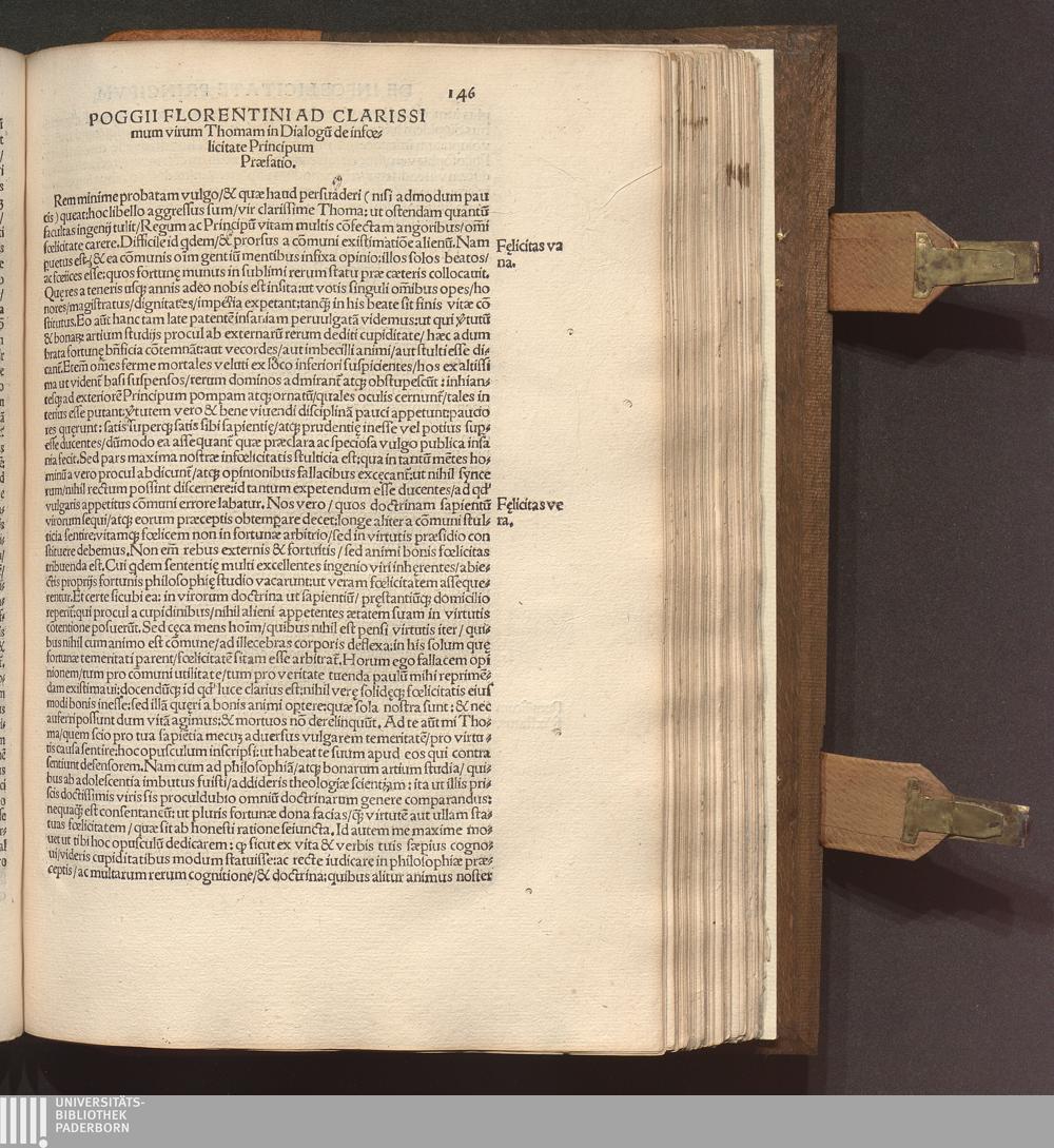 Poggii Florentini Oratoris || Clarissimi, Ac Sedis Apo.|| Secretarii Opervm || : Primae partis contenta. Historia disceptatiua de Avaricia. Histori[a]e disceptatiu[a]e Convivales tres. ... Asinvs Lvciani p[er] Poggiu[m] e gr[a]eco in latinu[m] versus. ... Secundae partis contenta. Liber Epistolarvm ... De laude Rvris siue rei rusticae. ... Finem ... Facetiarvm sales ponunt. ... Indice ... desuper confecto ... / [hrsg. von Thomas D. Avcvparivs]