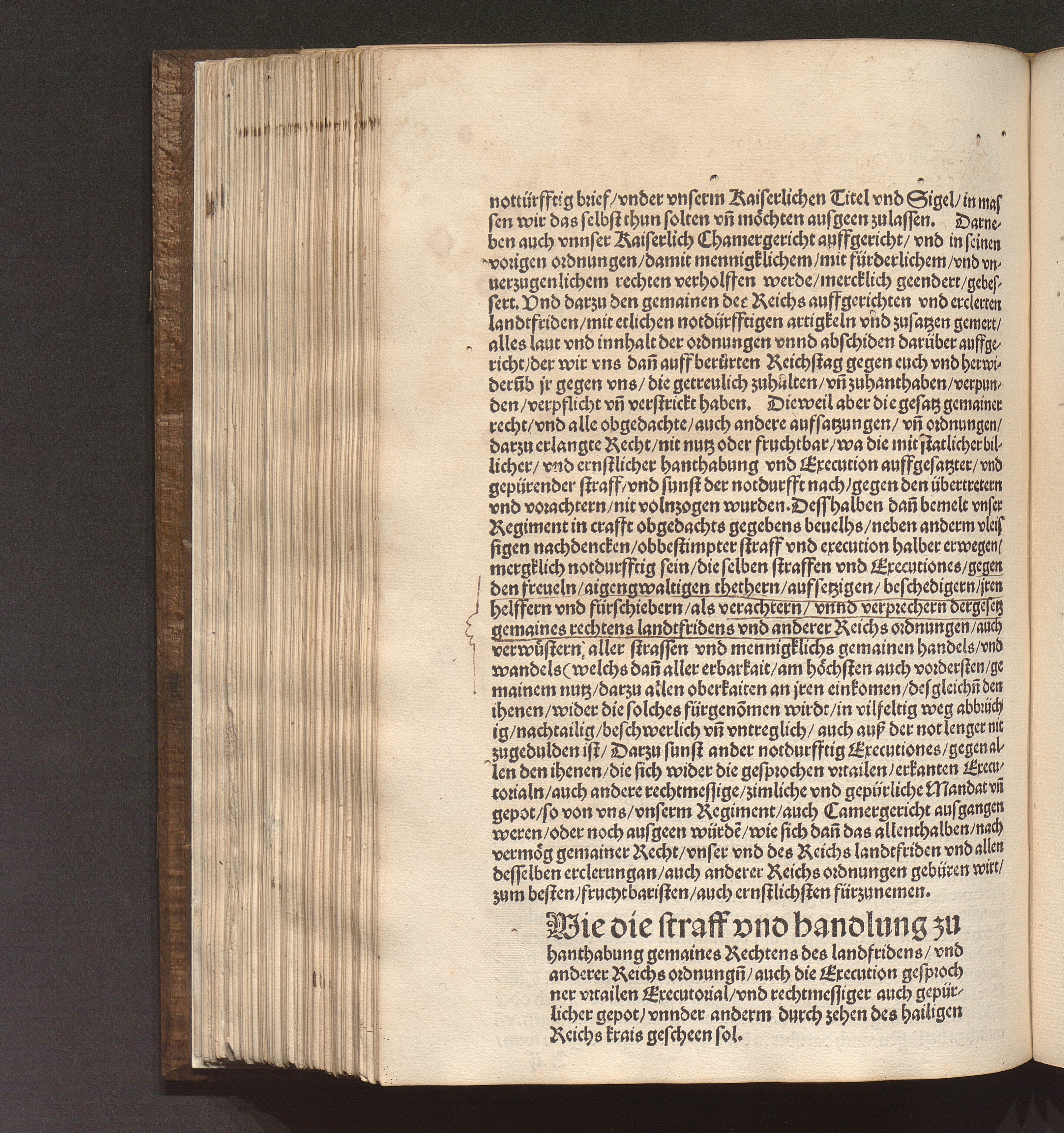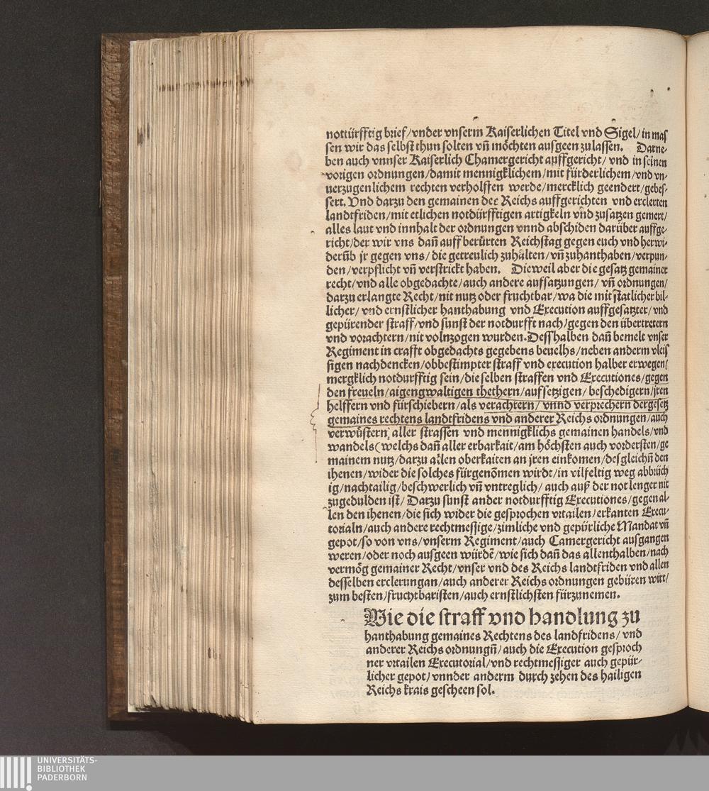 Romischer Kayserlicher Maiestat || ordnungen fürsehungen vn[d] erclerungen/ wie allenthalben || im hailigen Reich/ vnd sunderlich Teütscher Nation/ wi-||der die manigfeltigen vergweltiger/ beschediger/ vnd || des hayligen Reichs landtfridens verprecher/ darzu || desselben declarirt Echter. Auch ander ... || mit gepüren-||der straff ... || gehan-||delt wer-||den sol || ... : [Fünfzehenhundert vn[d] im zwayvndzwaintzigst[e]n. ... Jaren]