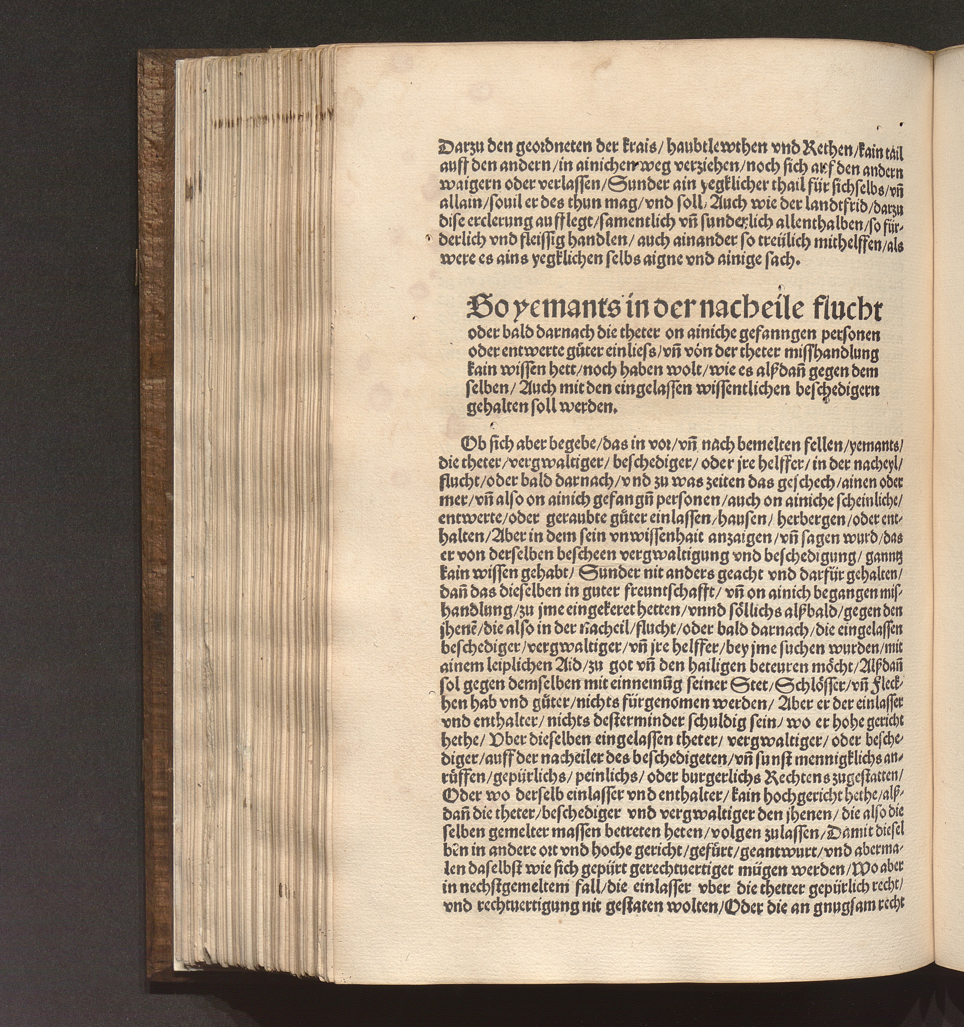 Romischer Kayserlicher Maiestat || ordnungen fürsehungen vn[d] erclerungen/ wie allenthalben || im hailigen Reich/ vnd sunderlich Teütscher Nation/ wi-||der die manigfeltigen vergweltiger/ beschediger/ vnd || des hayligen Reichs landtfridens verprecher/ darzu || desselben declarirt Echter. Auch ander ... || mit gepüren-||der straff ... || gehan-||delt wer-||den sol || ... : [Fünfzehenhundert vn[d] im zwayvndzwaintzigst[e]n. ... Jaren]
