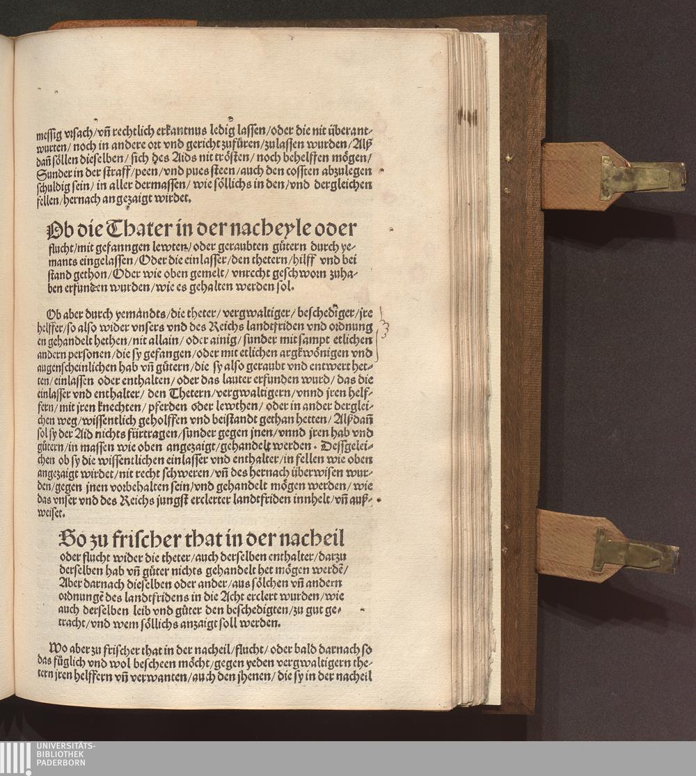 Romischer Kayserlicher Maiestat || ordnungen fürsehungen vn[d] erclerungen/ wie allenthalben || im hailigen Reich/ vnd sunderlich Teütscher Nation/ wi-||der die manigfeltigen vergweltiger/ beschediger/ vnd || des hayligen Reichs landtfridens verprecher/ darzu || desselben declarirt Echter. Auch ander ... || mit gepüren-||der straff ... || gehan-||delt wer-||den sol || ... : [Fünfzehenhundert vn[d] im zwayvndzwaintzigst[e]n. ... Jaren]
