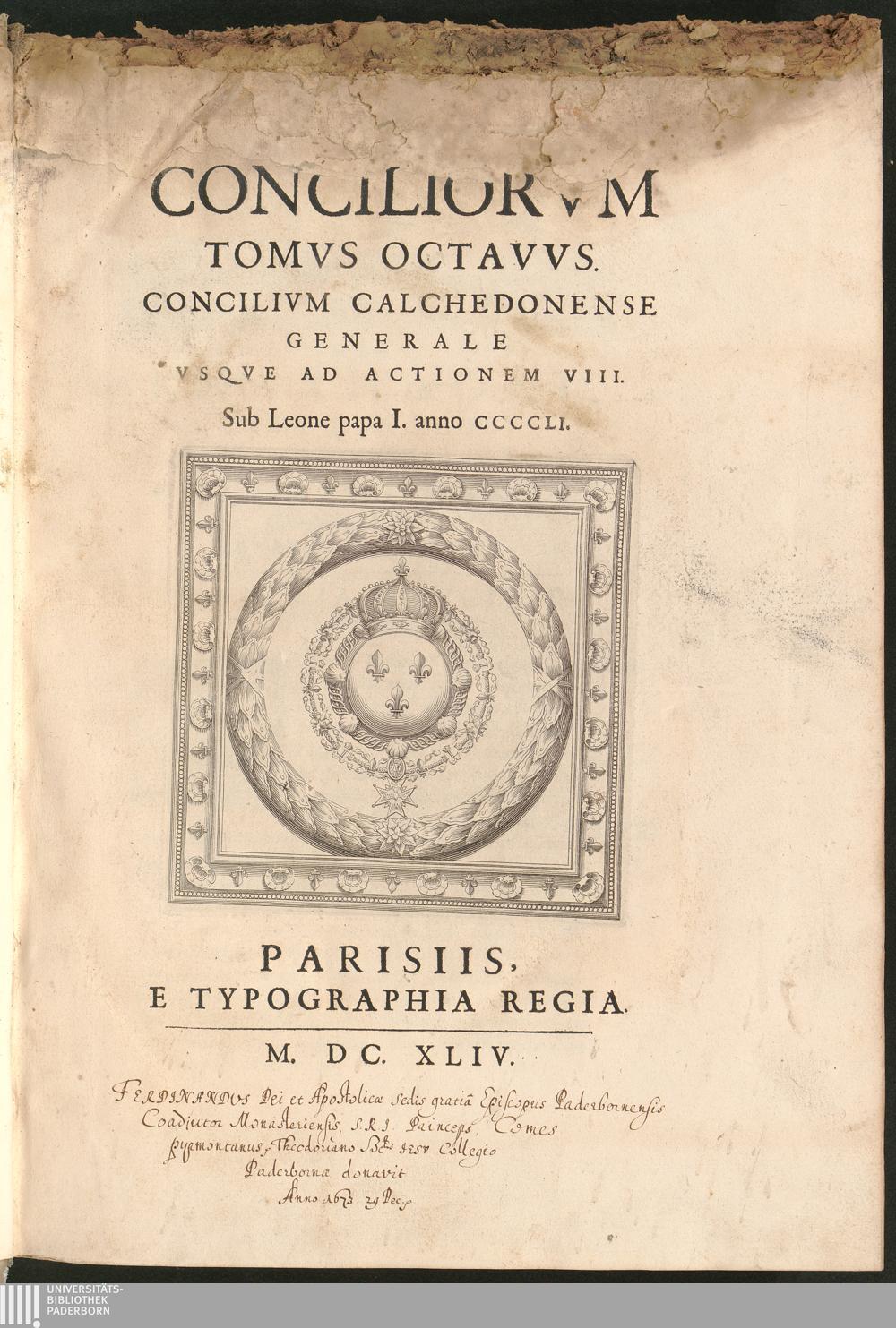Tomvs Octavvs (1644) Concilivm Calchedonense Generale Vsqve Ad Actionem VIII. Sub Leone papa I. anno CCCCLI.
