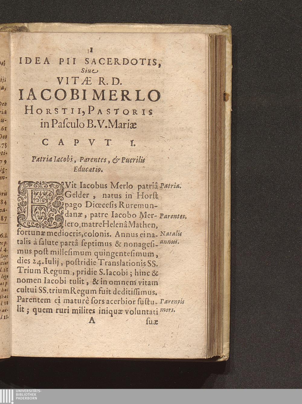 Caput 1. Patria Iacobi, Parentes, & puerilis educatio.