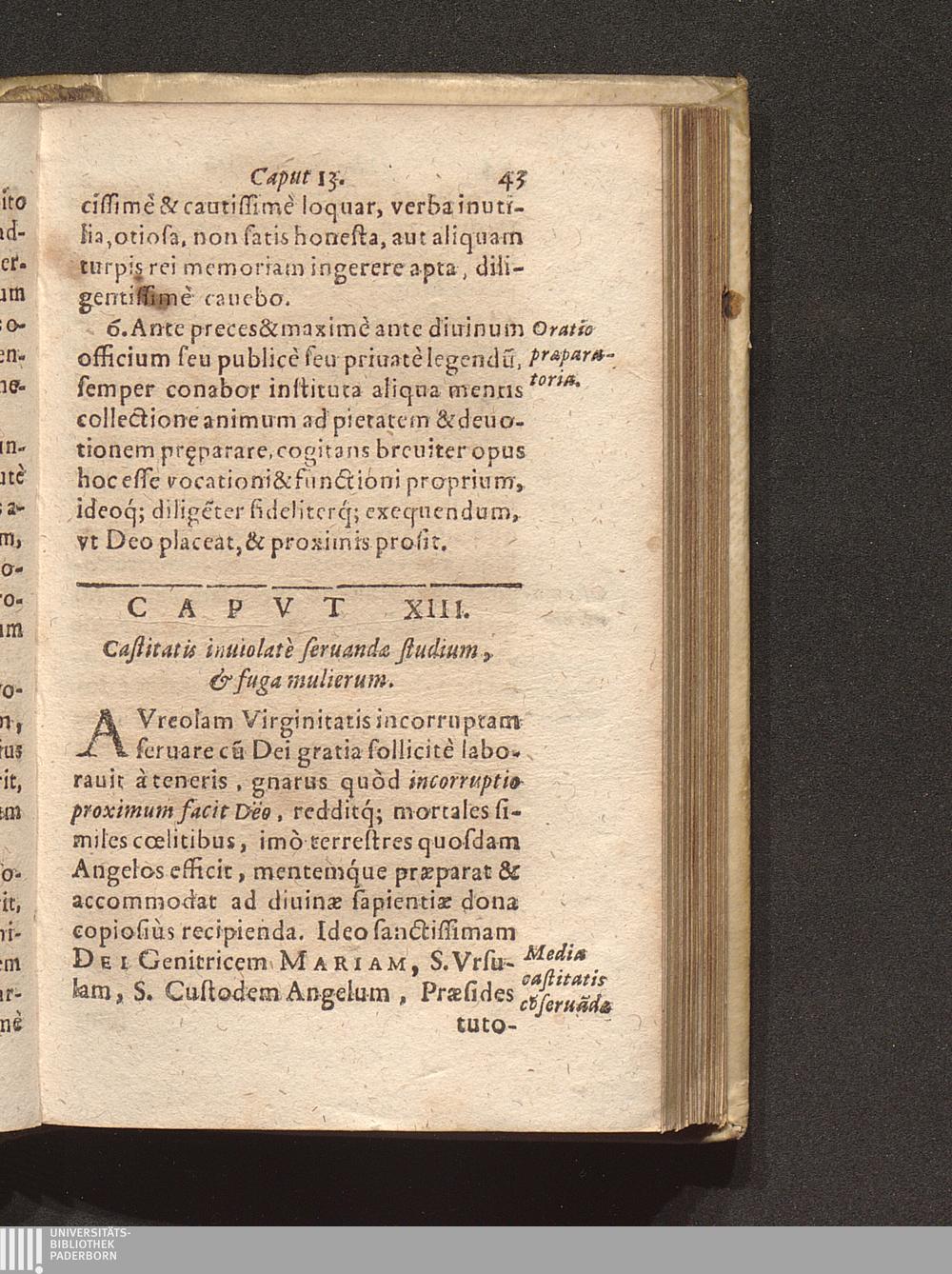 Caput 13. Castitatis inuiolatè seruandae studium & fuga mulierum.
