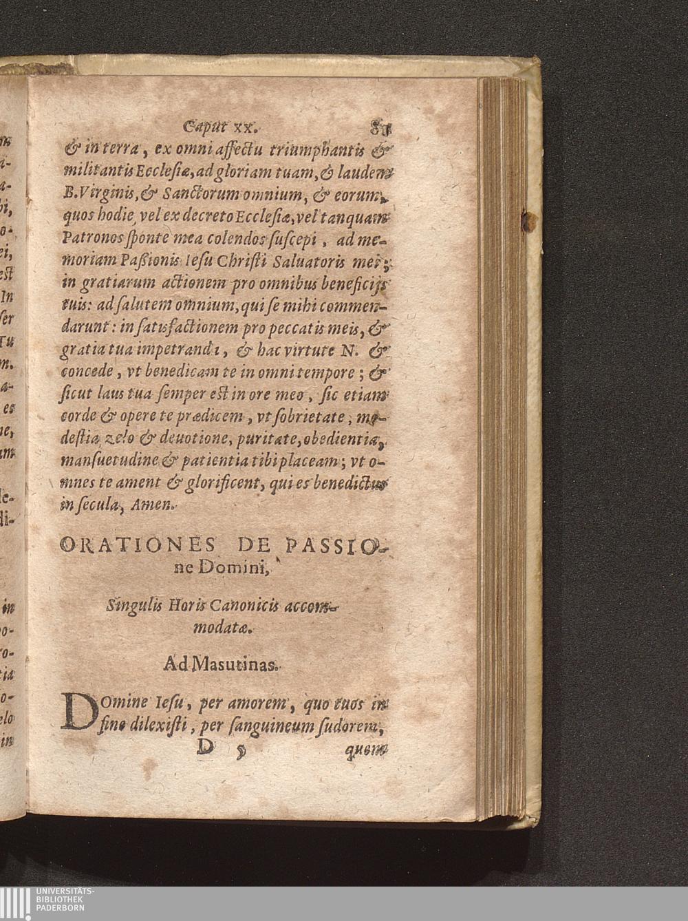Orationes de Passione Domini, singulis Horis Canonicis accommodatae.