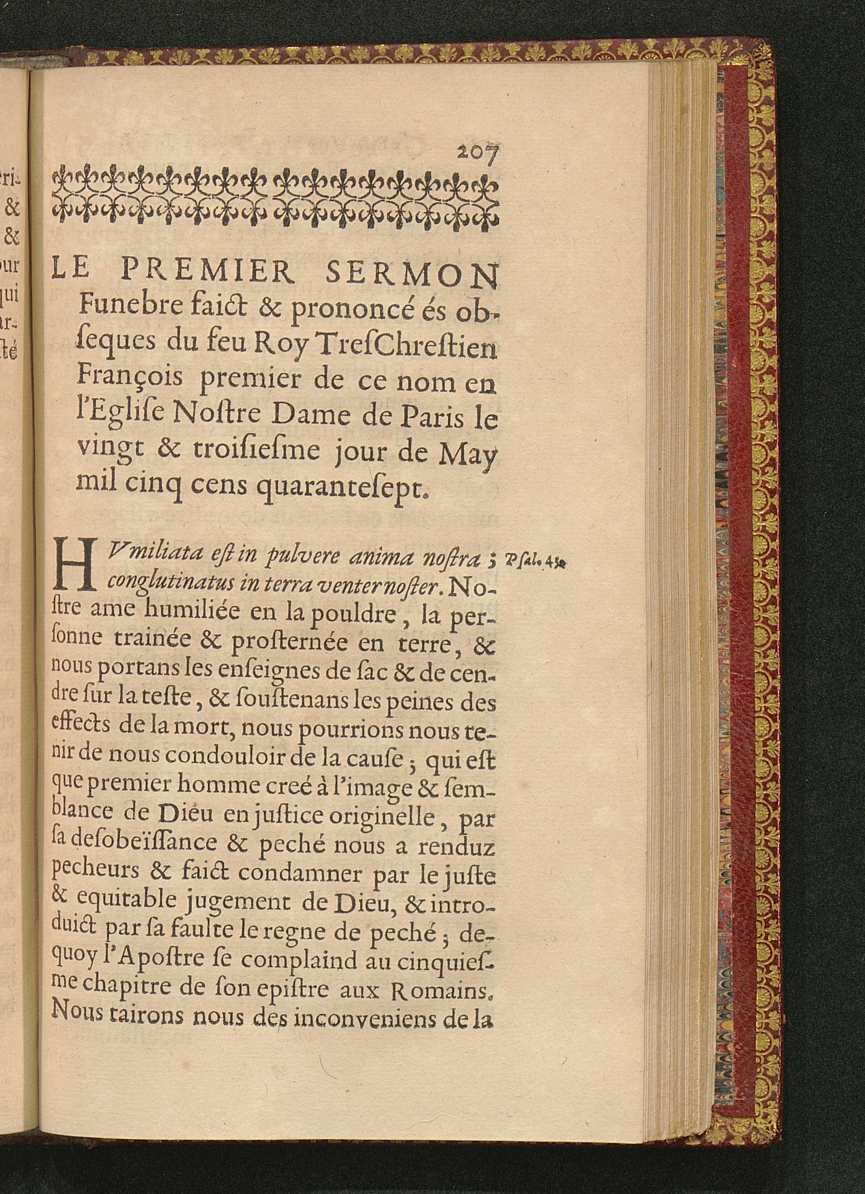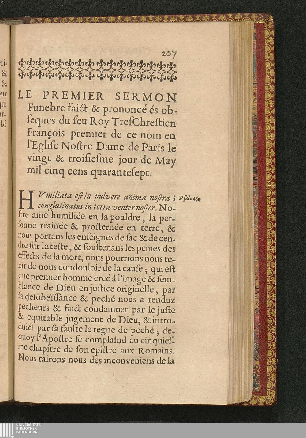 Le Premier Sermon Funebre faict & prononcé és obseques du feu Roy TresChrestien François premier de ce nom en l'Eglise Nostre Dame de Paris le vingt & troisiesme jour de May mil cinq cens quarantesept.