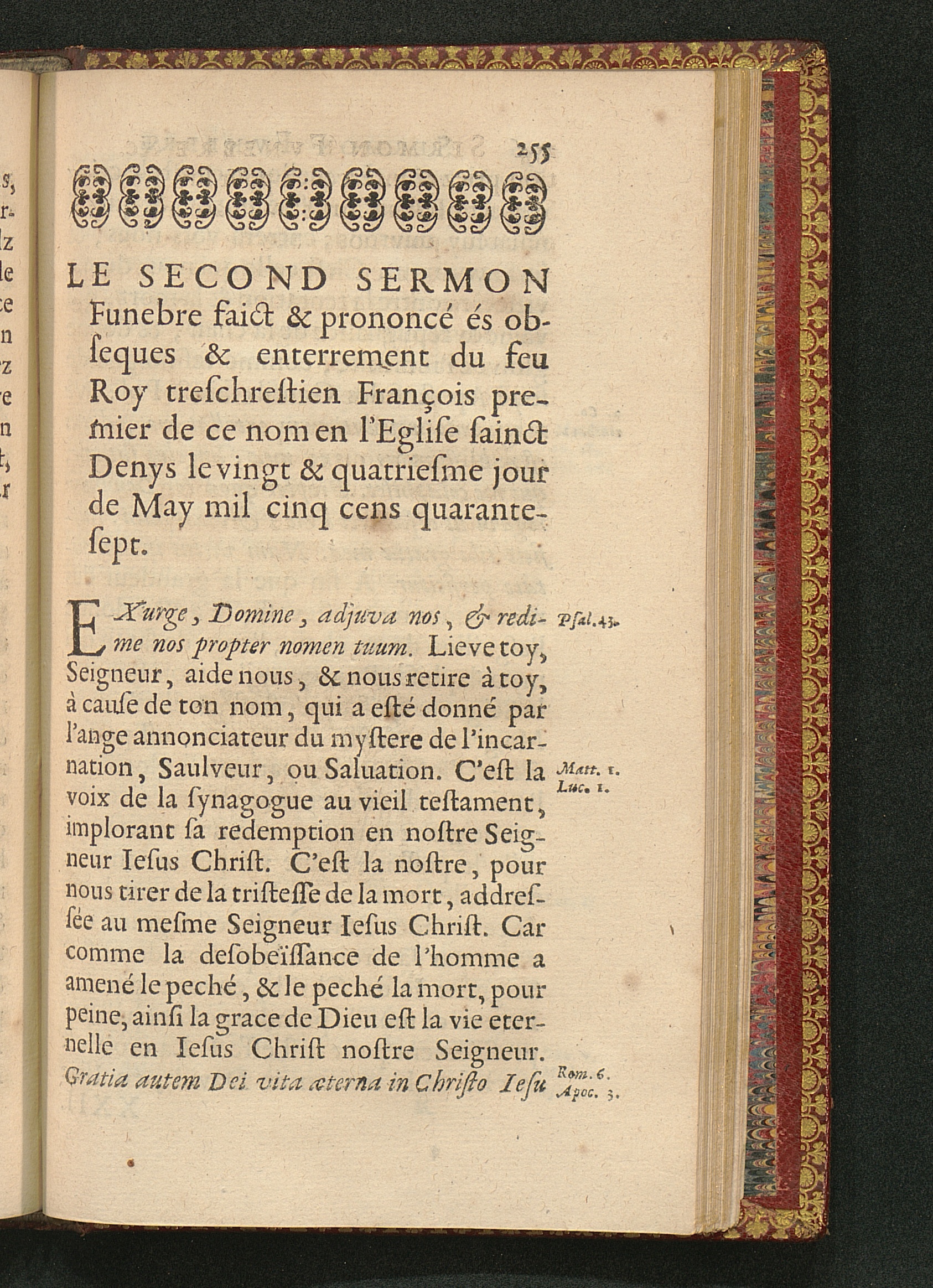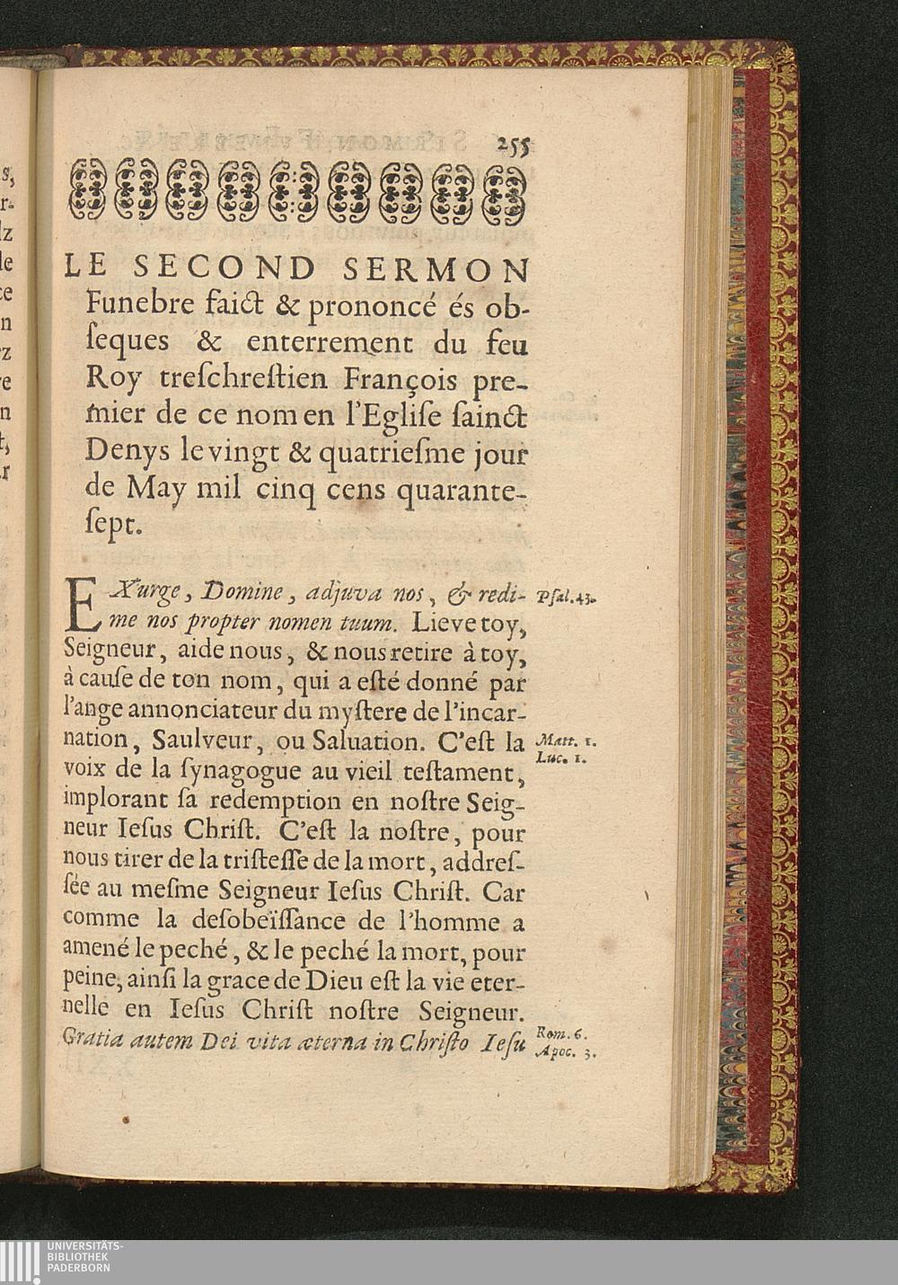 Le Second Sermon Funebre faict & prononcé és obseques & enterrement du feu Roy treschrestien François premier de ce nom en l'Eglise sainct Denys le vingt & quatriesme jour de May mil cinq cens quarantesept.