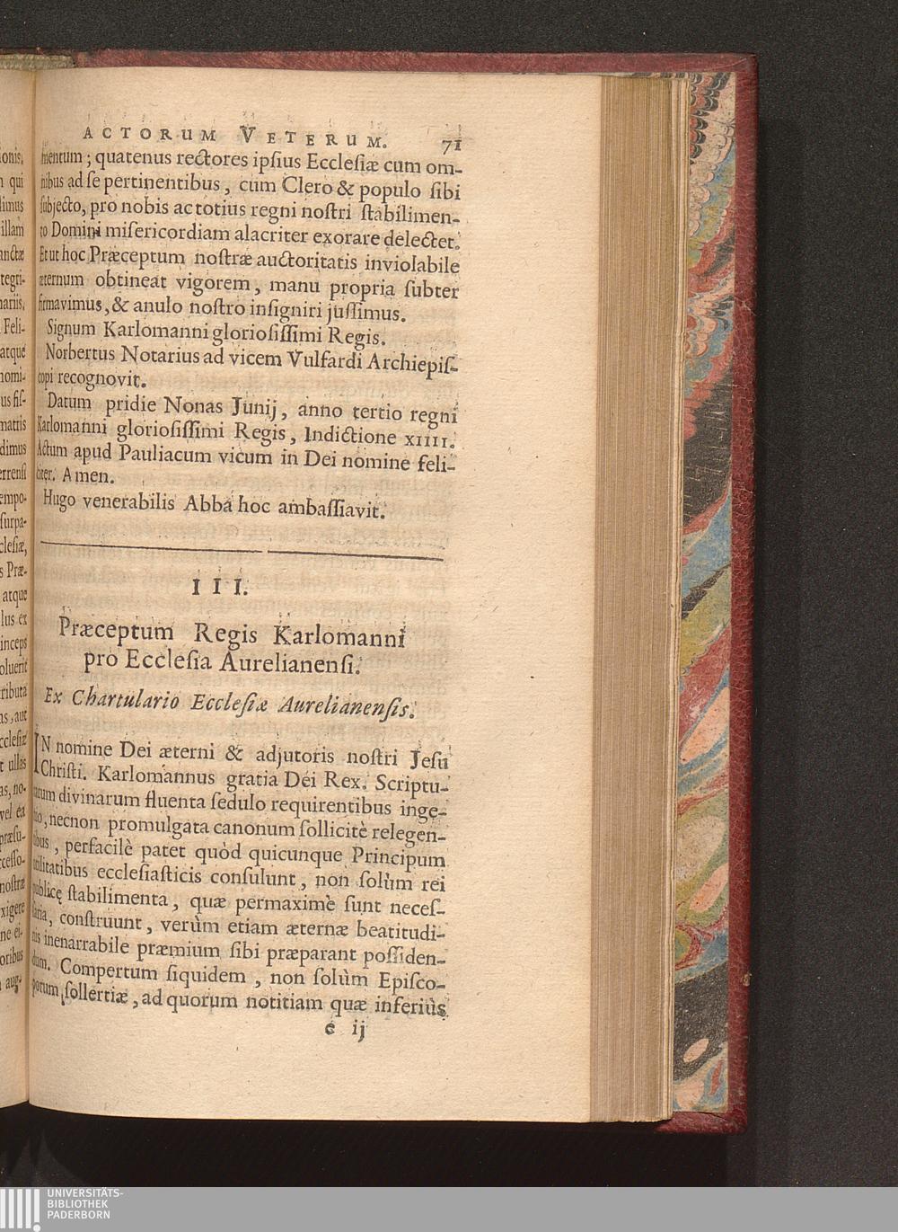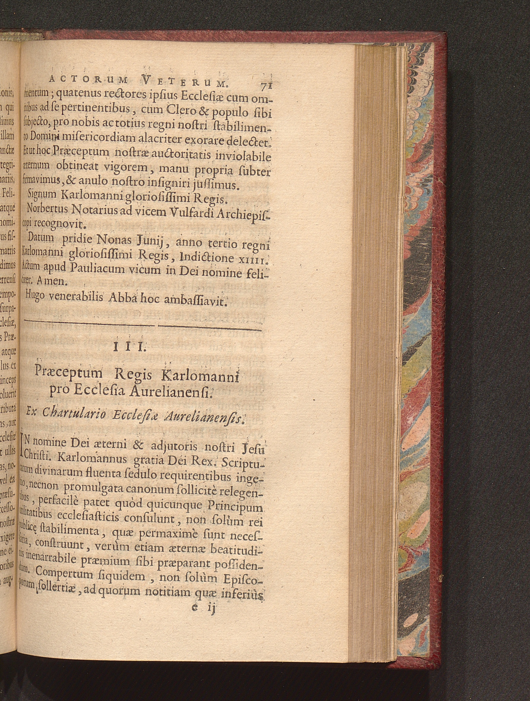 III. Præceptum Regis Karlomanni pro Ecclesia Aurelianensi. Ex Chartulario Ecclesiæ[...]