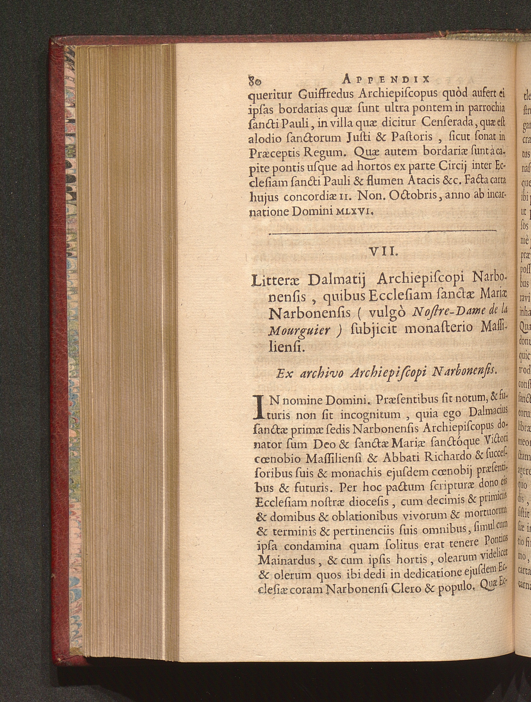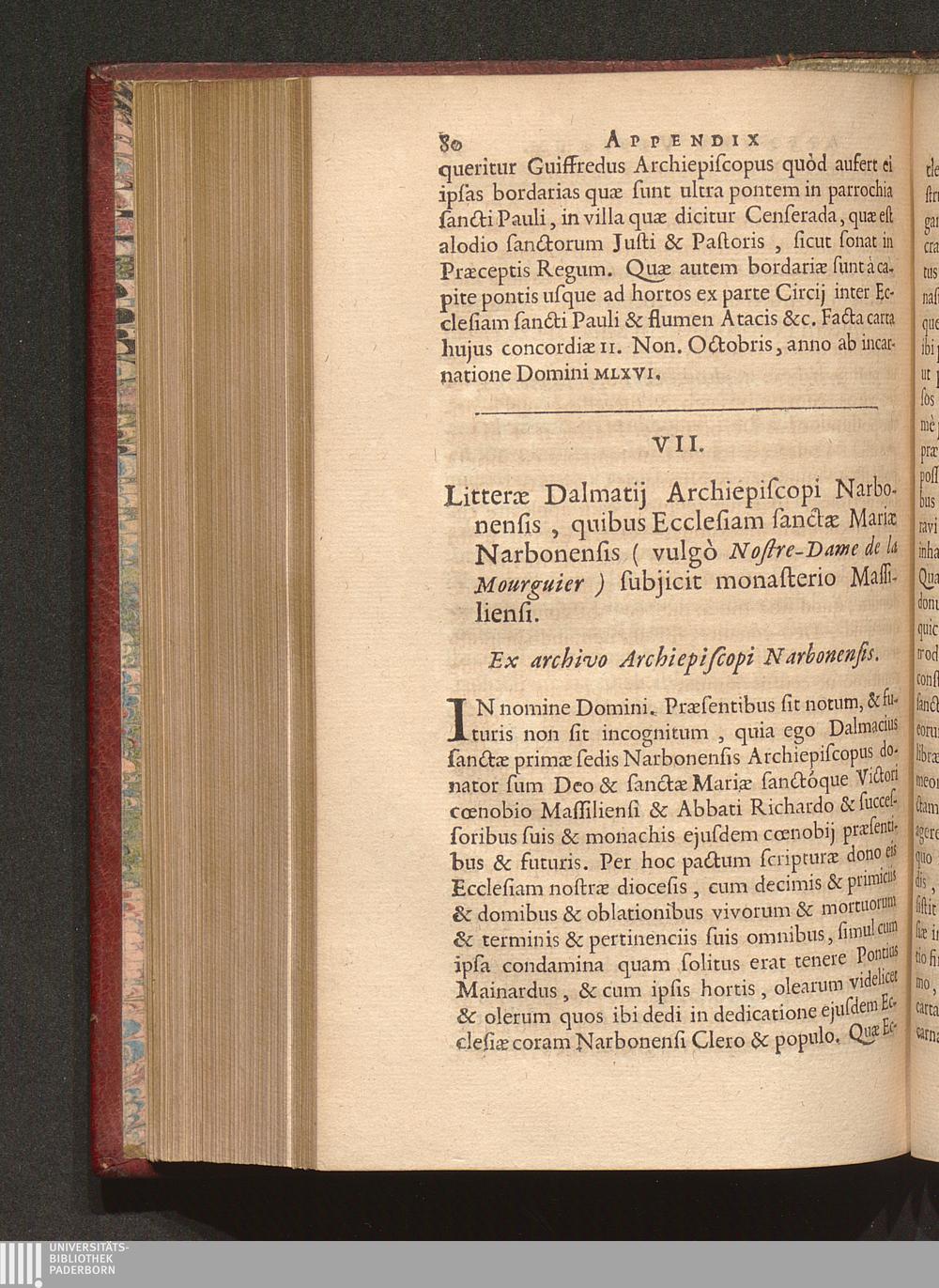 VII. Litteræ Dalmatij Archiepiscopi Narbonensis, quibus Ecclesiam sanctæ Mariæ Narbonensis[...]