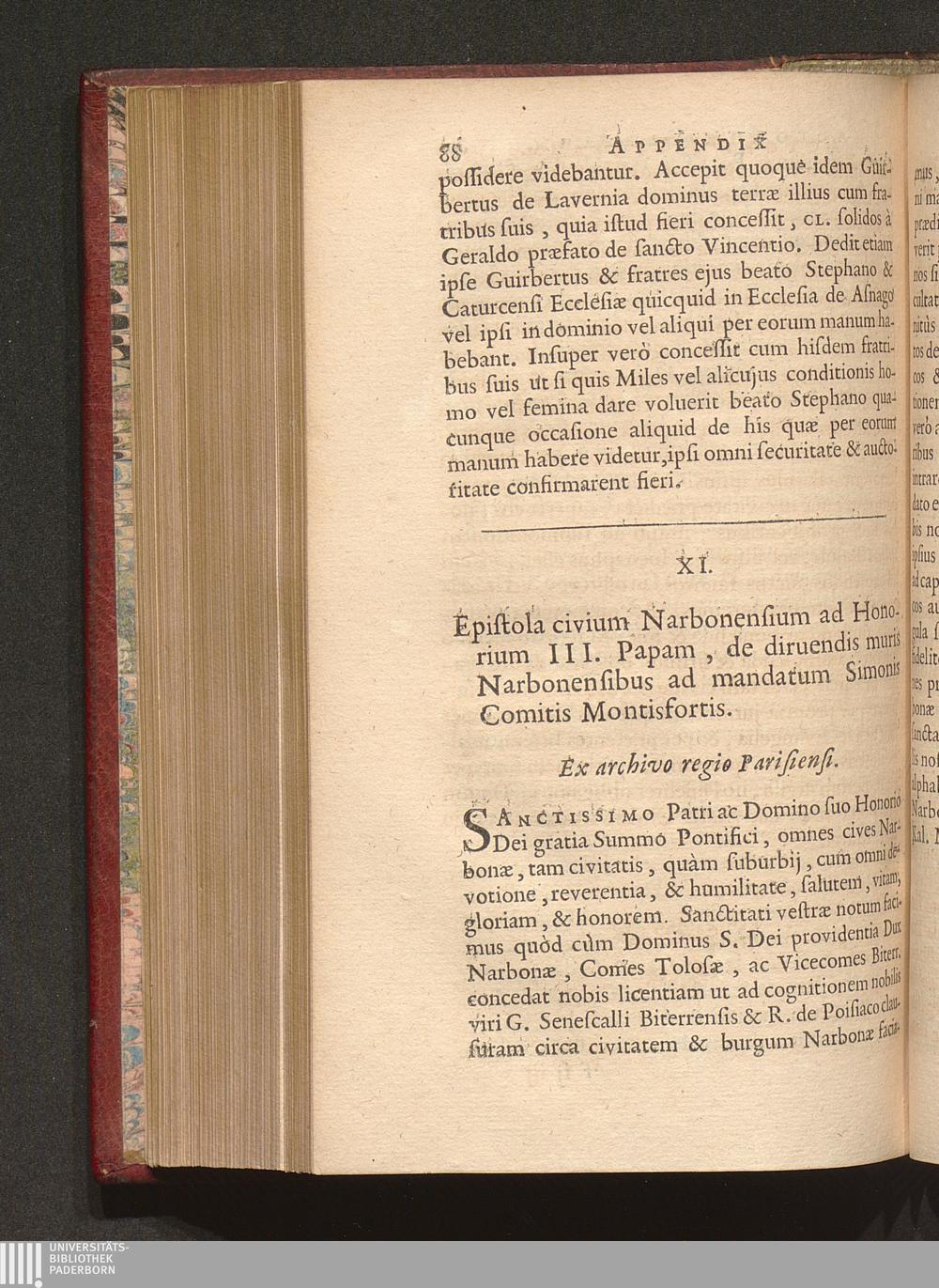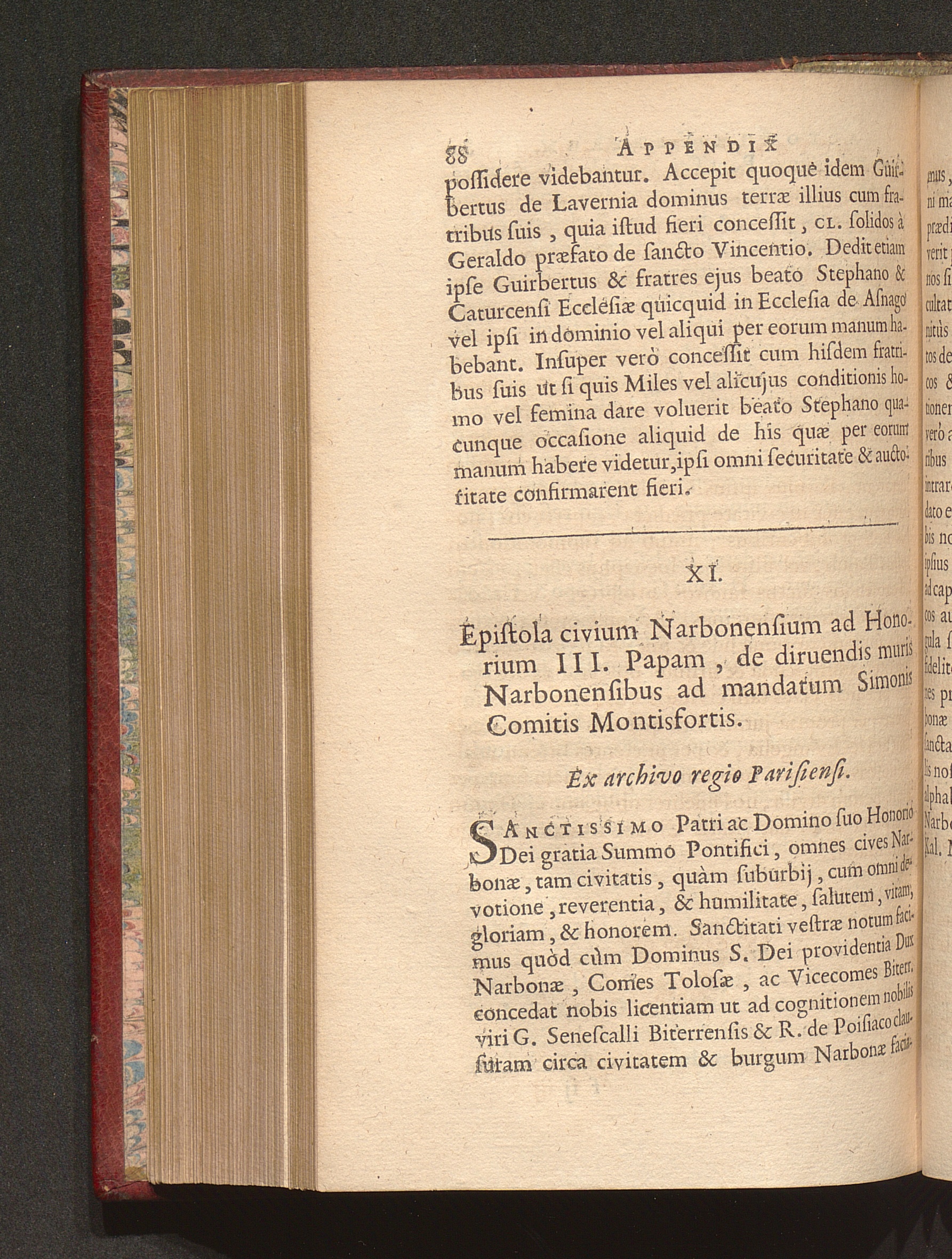 XI. Epistola civium Narbonensium ad Honorium III. Papam, de diruendis muris Narbonensibus[...]