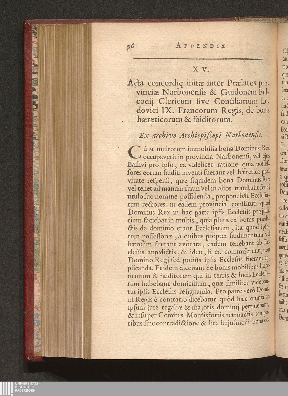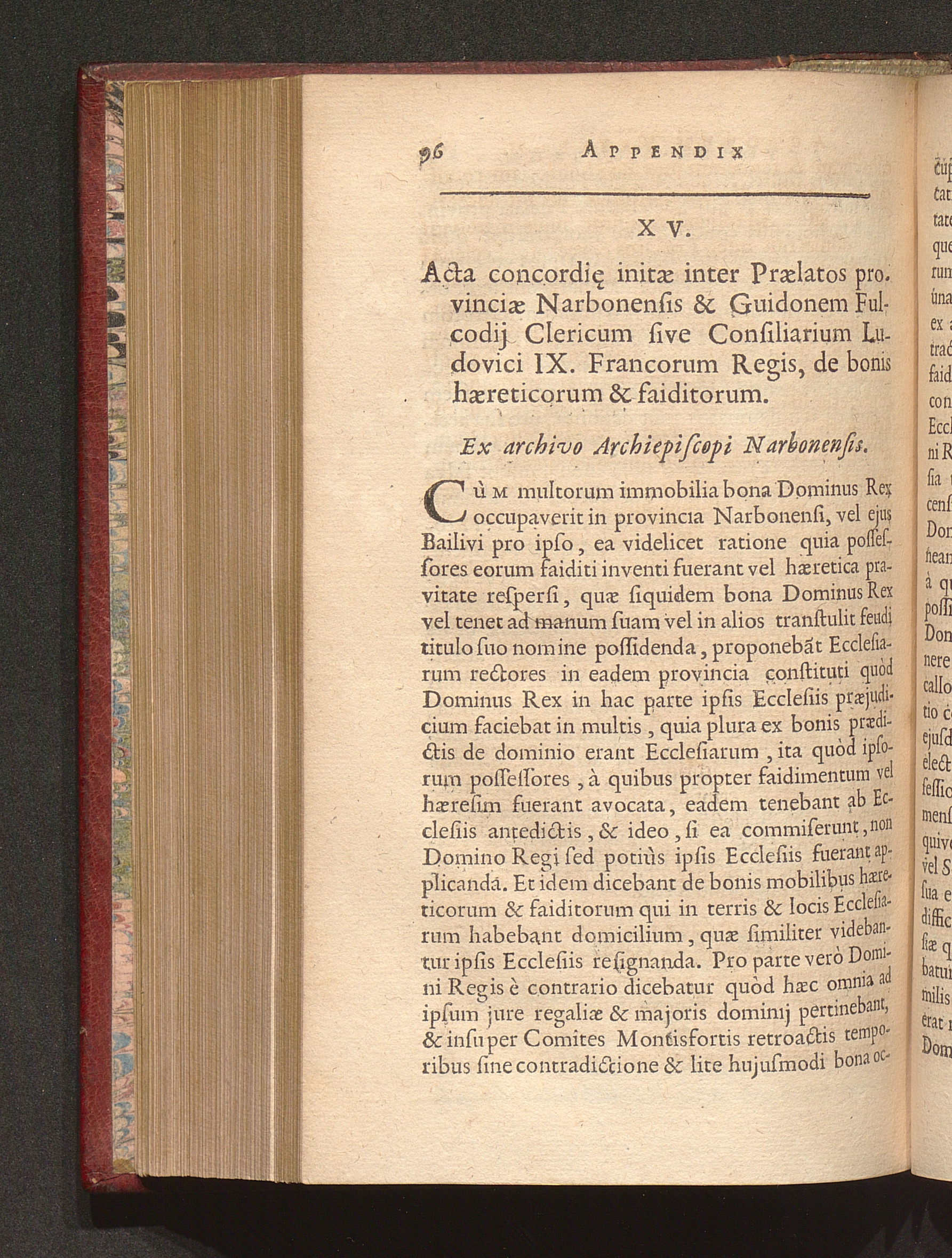 XV. Acta concordiæ initæ inter Prælatos provinciæ Narbonensis & Guidonem Fulcodij[...]