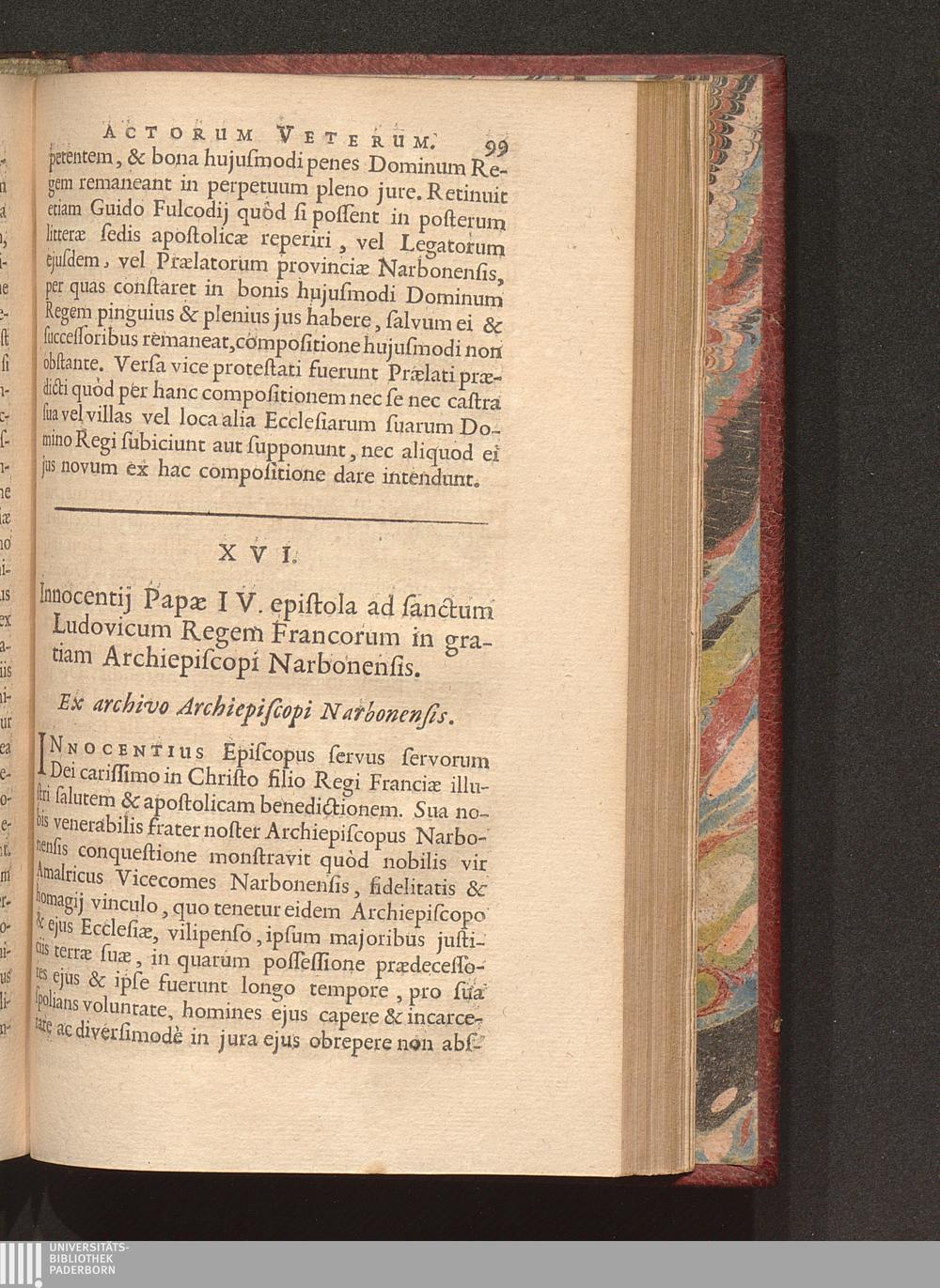 XVI. Innocentij Papæ IV. epistola ad sanctum Ludovicum Regem Francorum in gratiam[...]