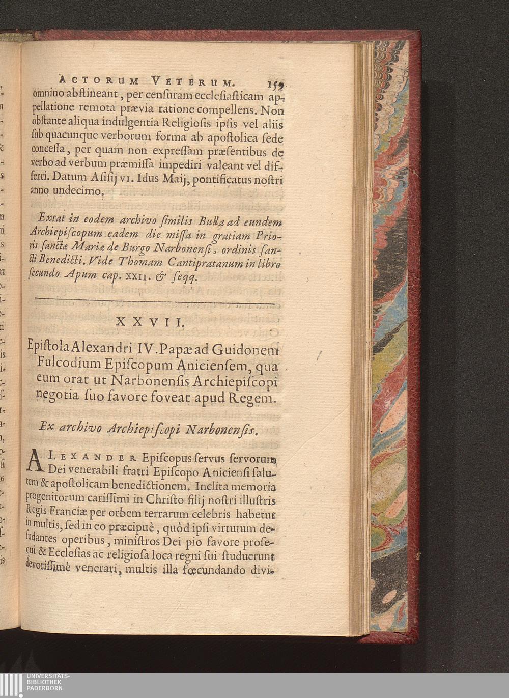 XXVII. Epistola Alexandri IV. Papæ ad Guidonem Fulcodium Episcopum Aniciensem, qua[...]