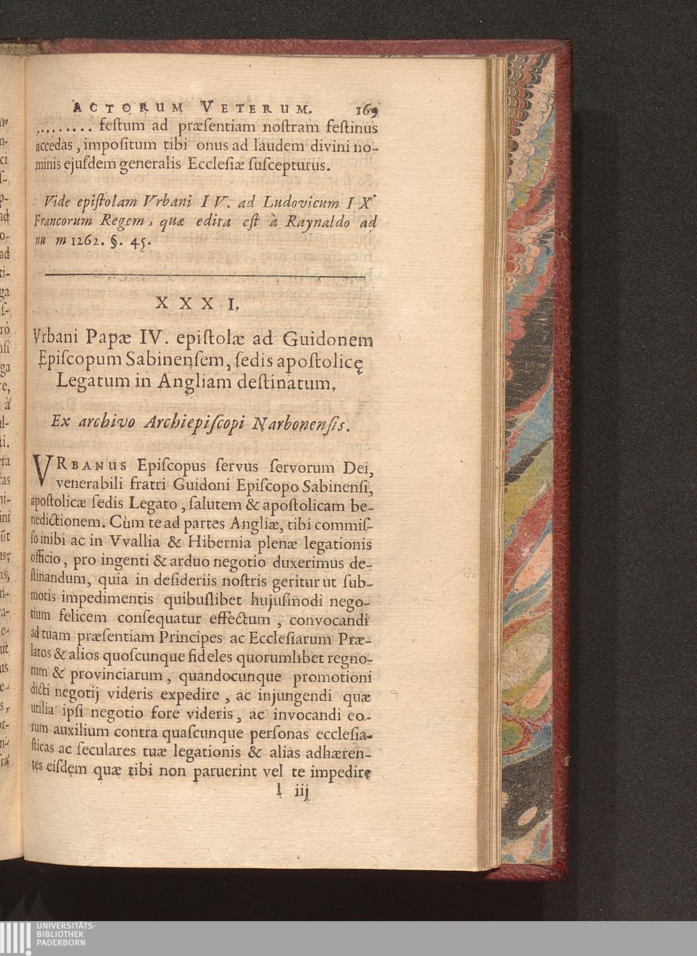 XXXI. Vrbani Papæ IV. epistolæ ad Guidonem Episcopum Sabinensem, sedis apostolicæ[...]