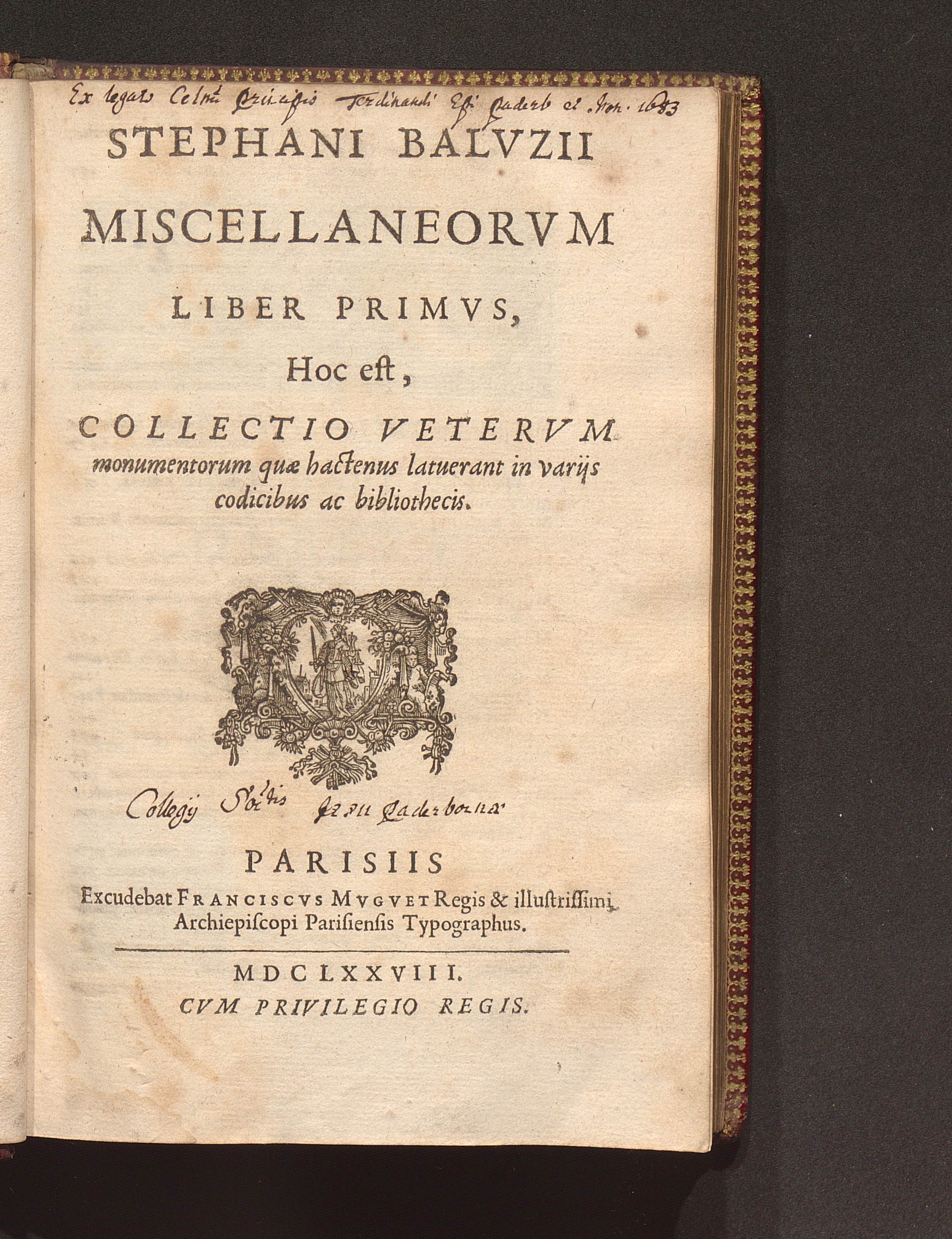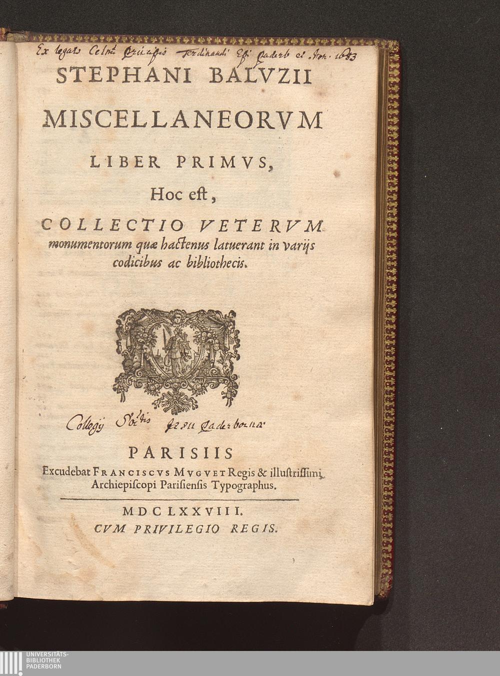 Stephani Balvzii Miscellaneorvm Liber ... Hoc est, Collectio Vetervm monumentorum,[...]