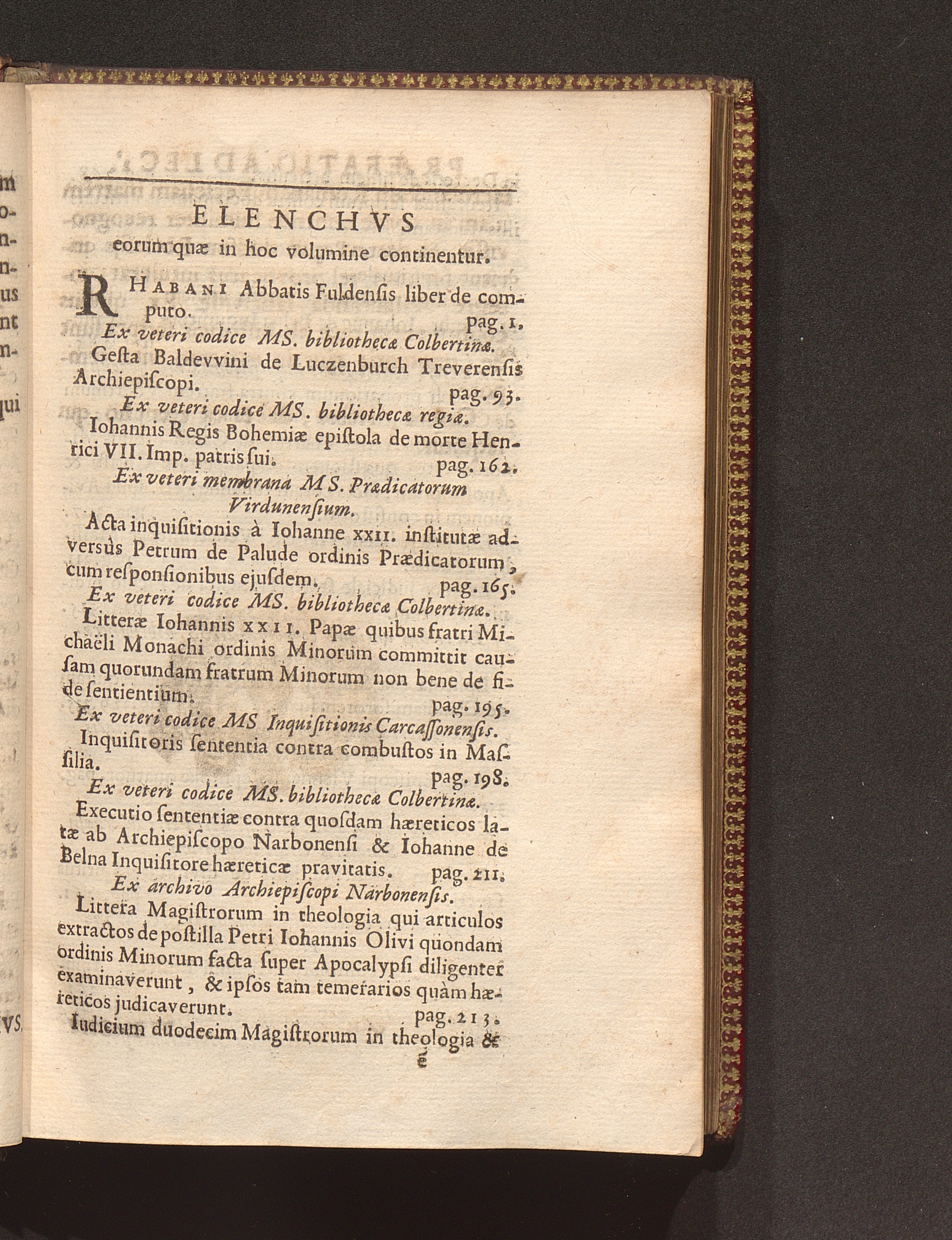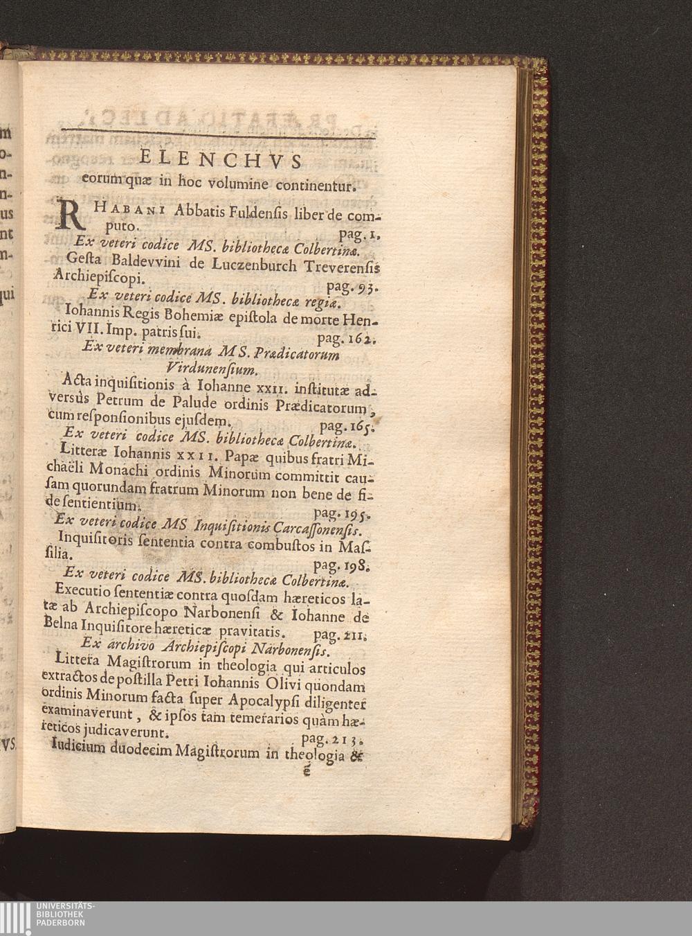 Elenchus eorum quæ in hoc volumine continentur.