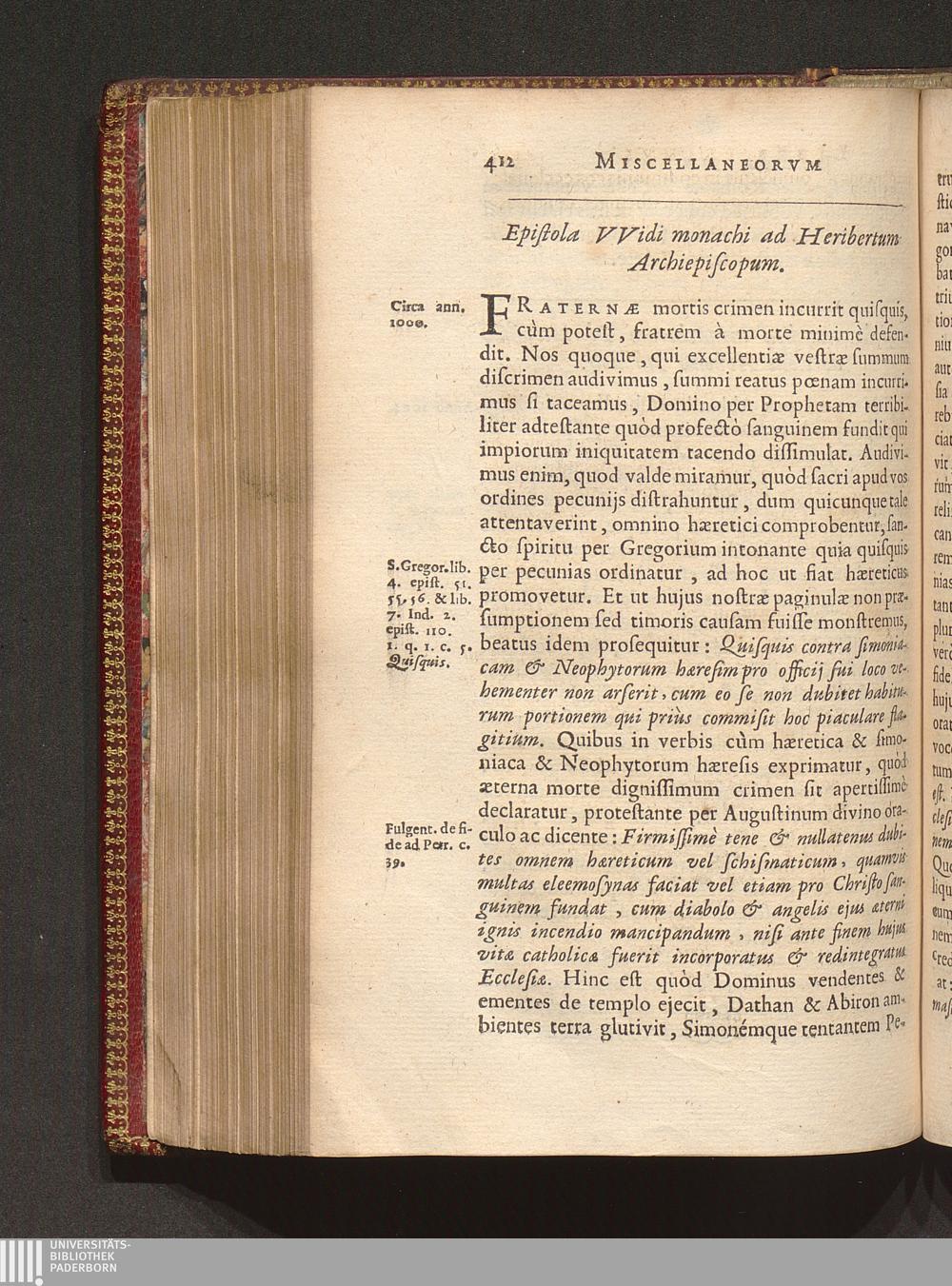 Epistola VVidi monachi ad Heribertum Archiepiscopum.