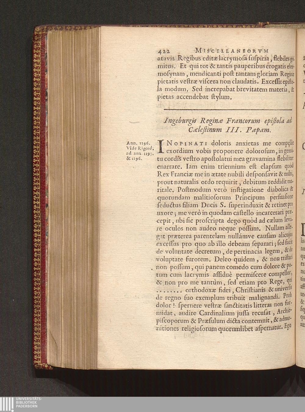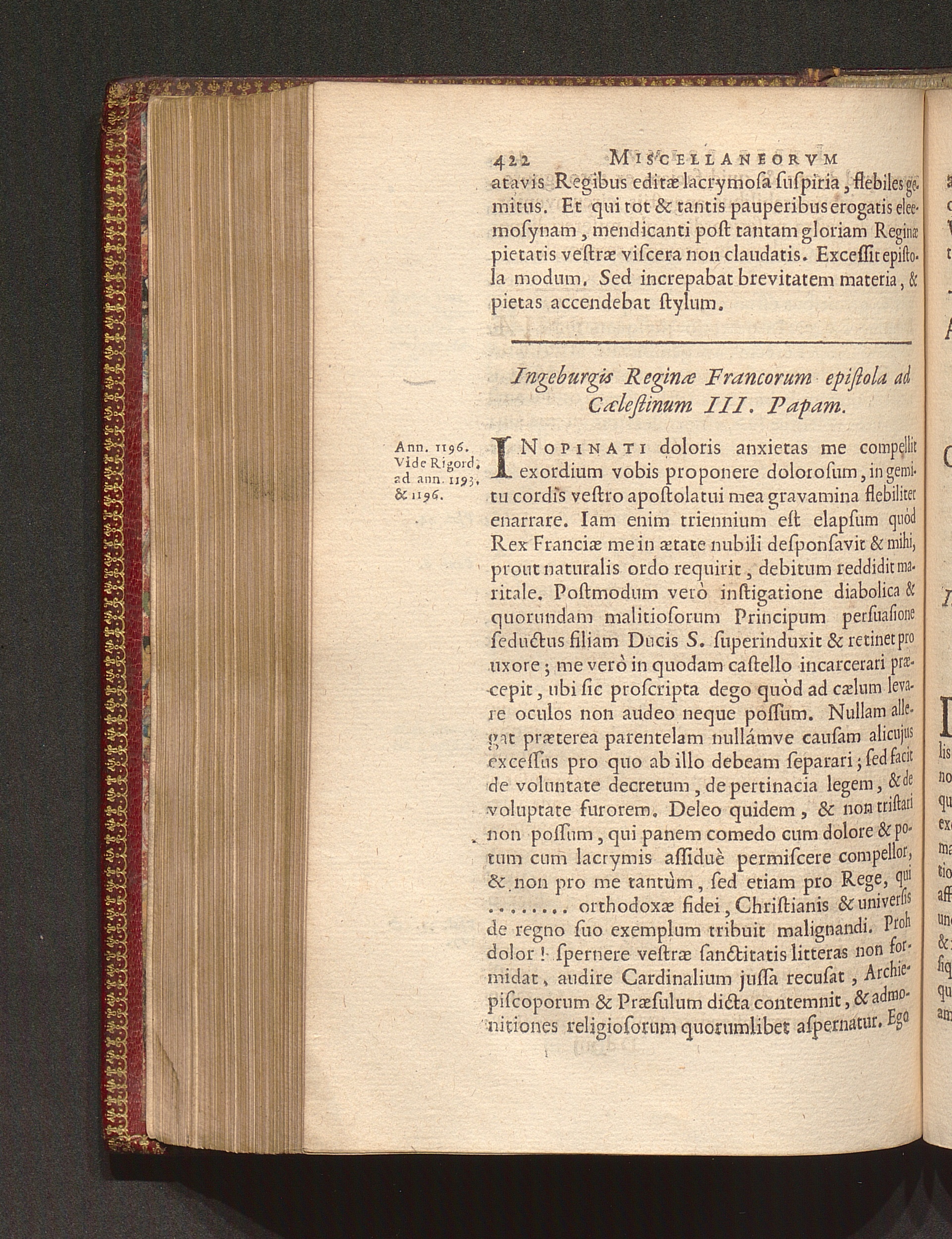 Ingeburgis Reginæ Francorum epistola ad Cælestinum III. Papam.