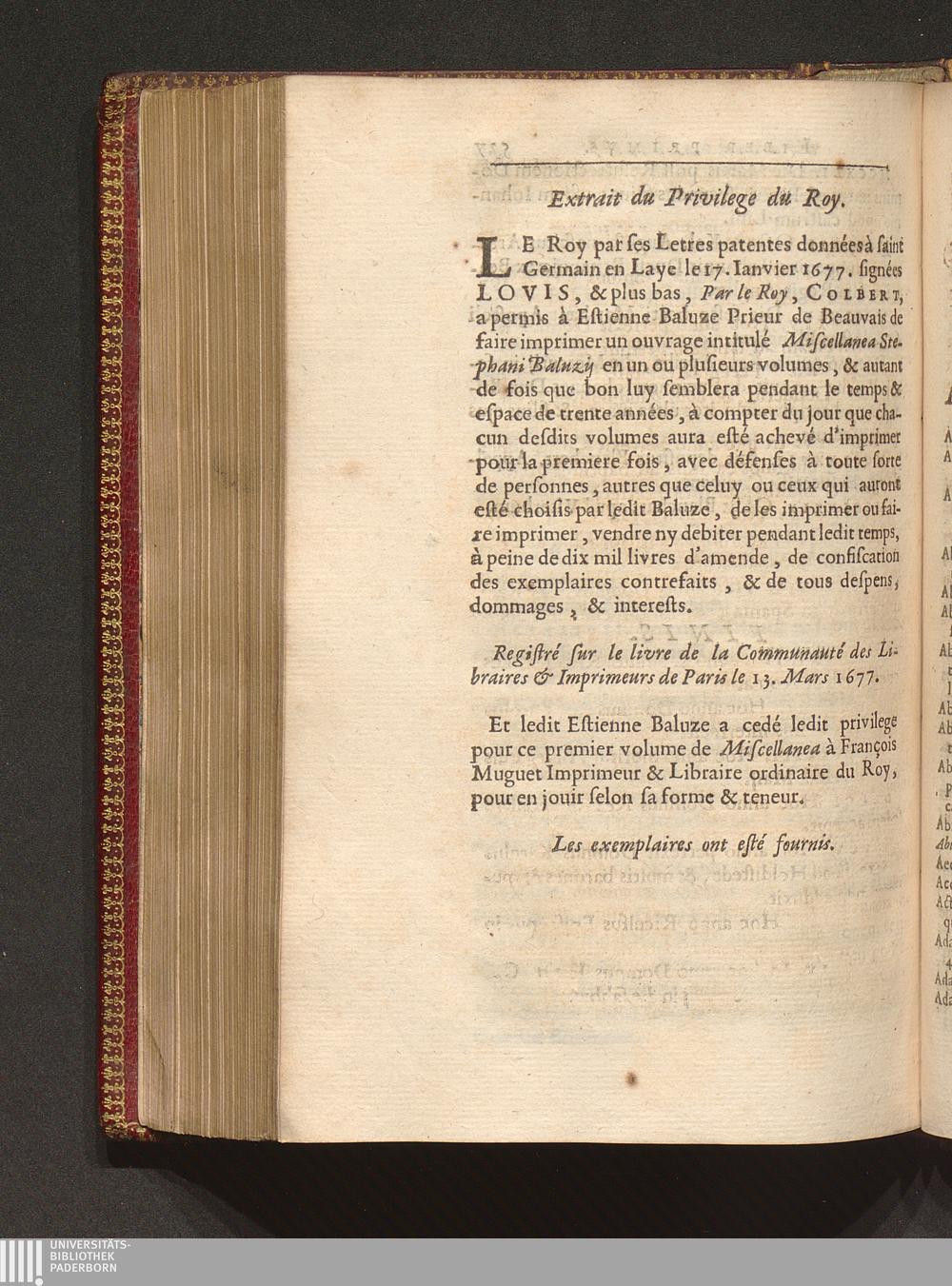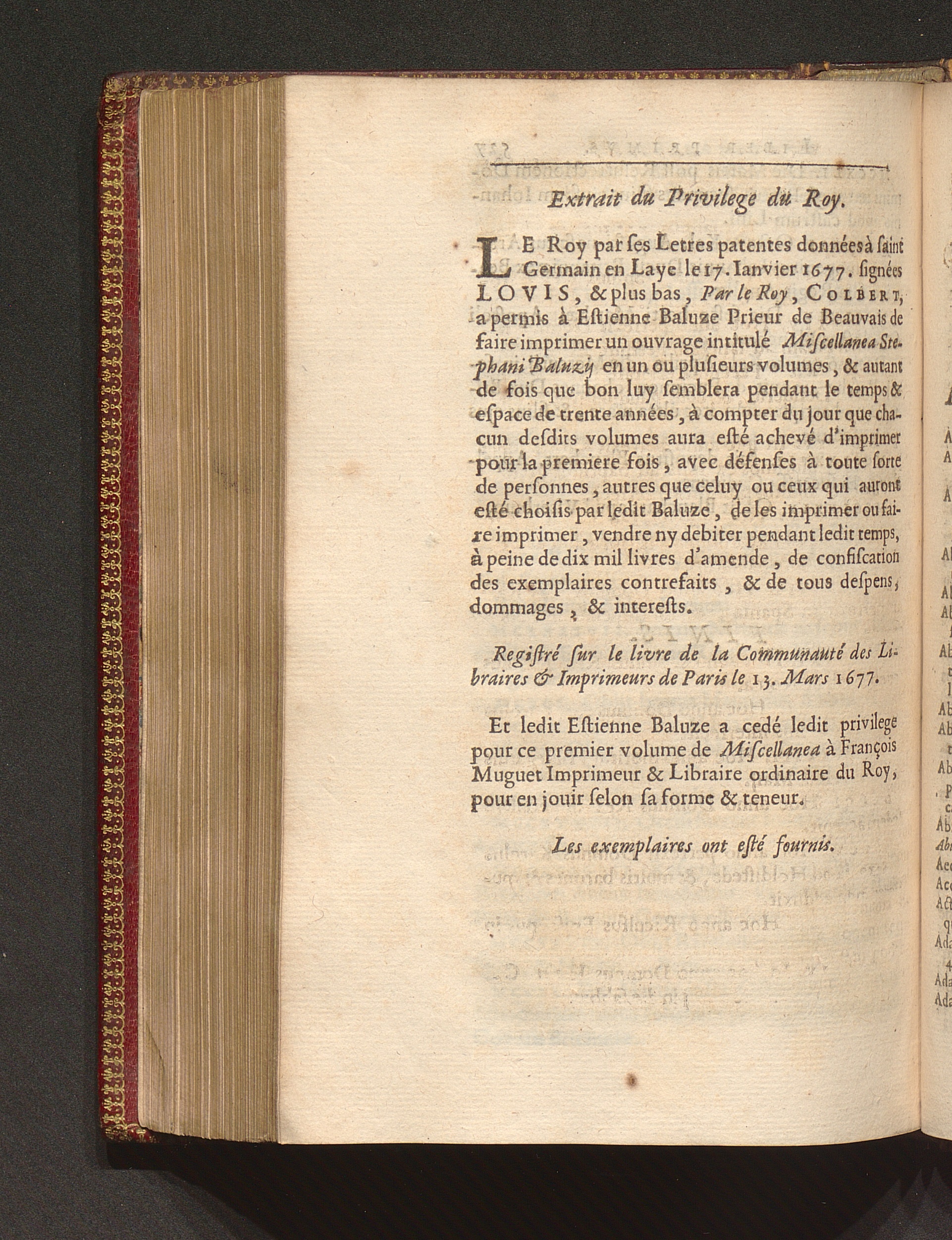 Extrait du Privilege du Roy.