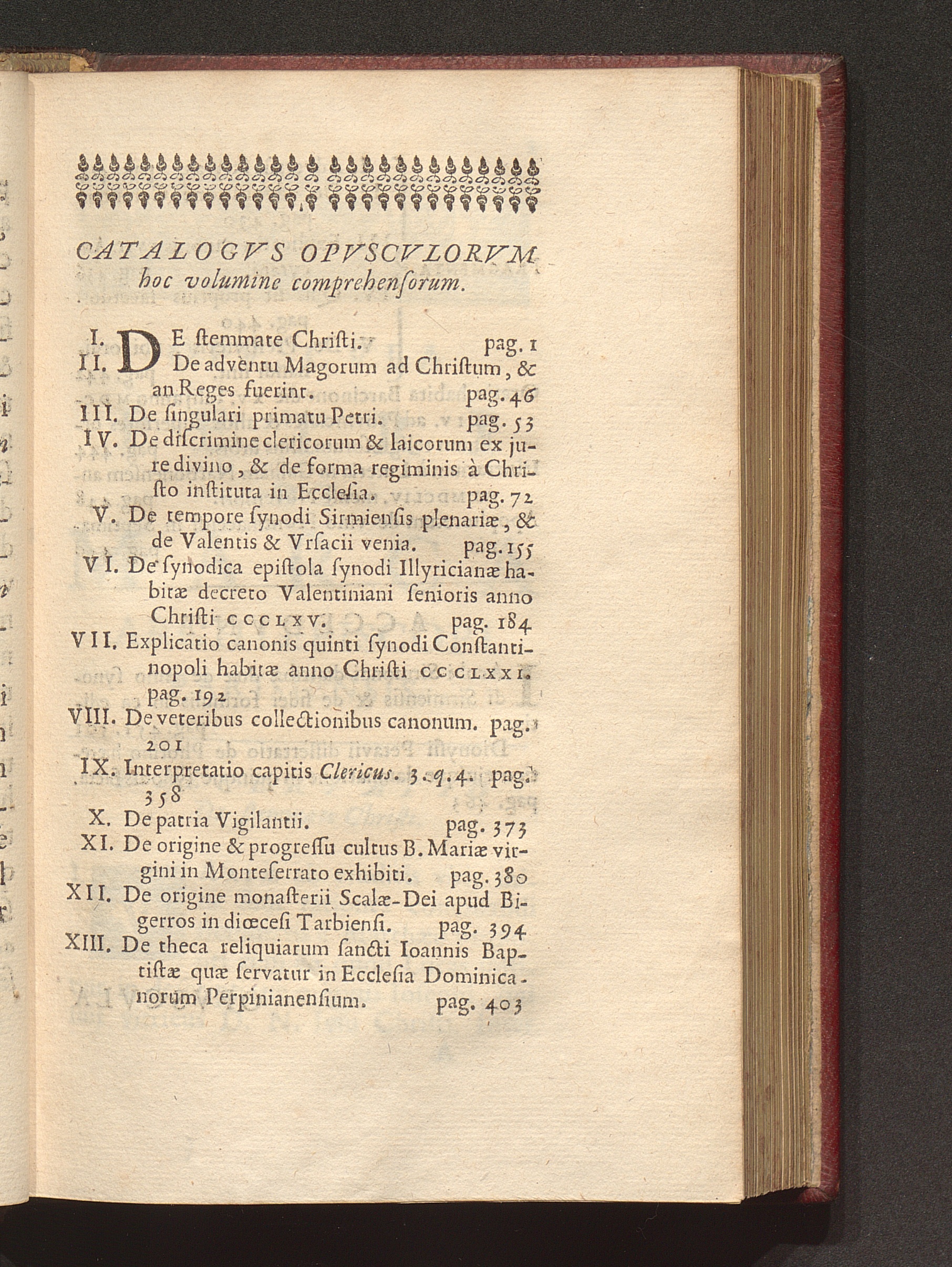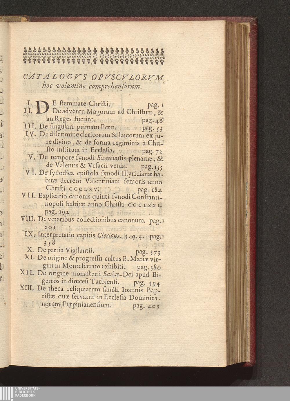 Catalogvs Opvscvlorvm hoc volumine comprehensorum.