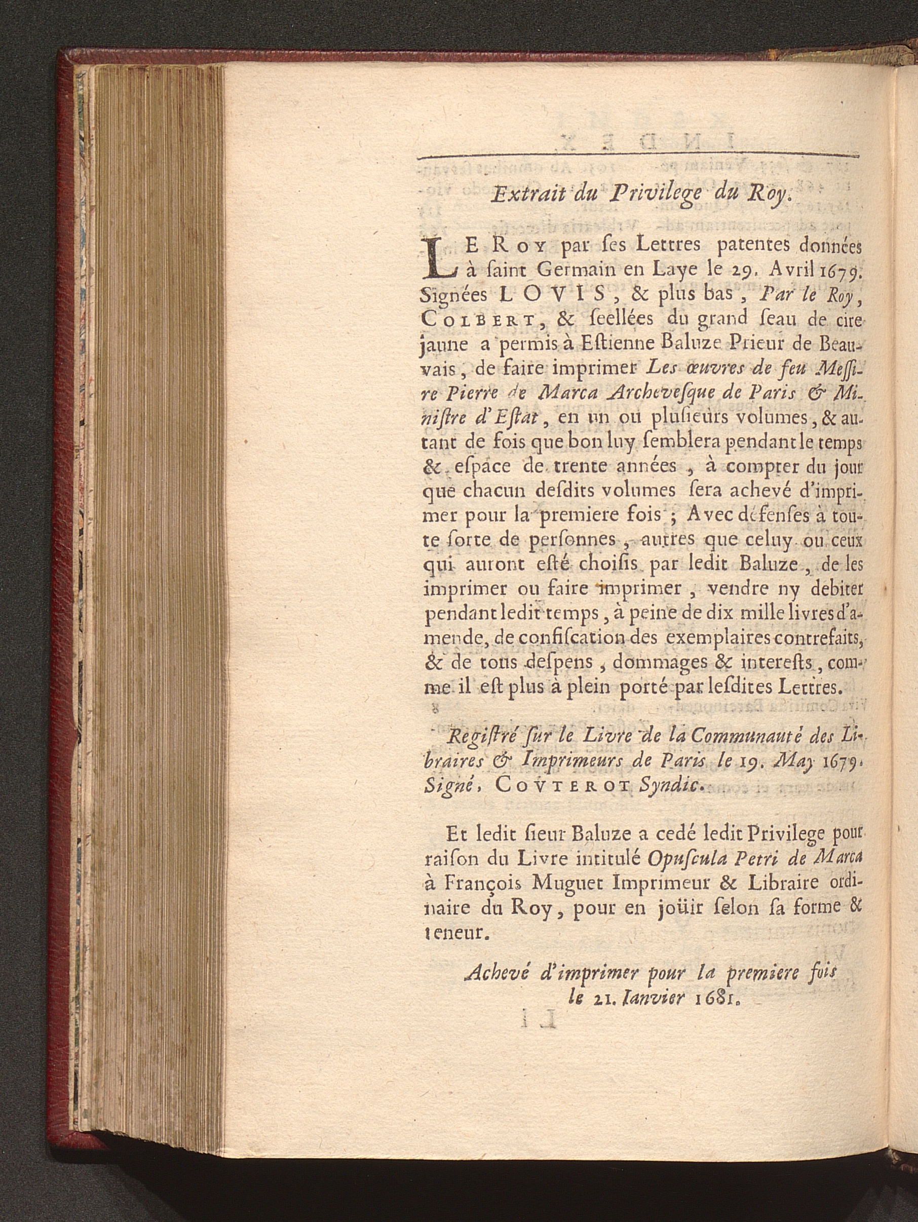 Extrait du Privilege du Roy.