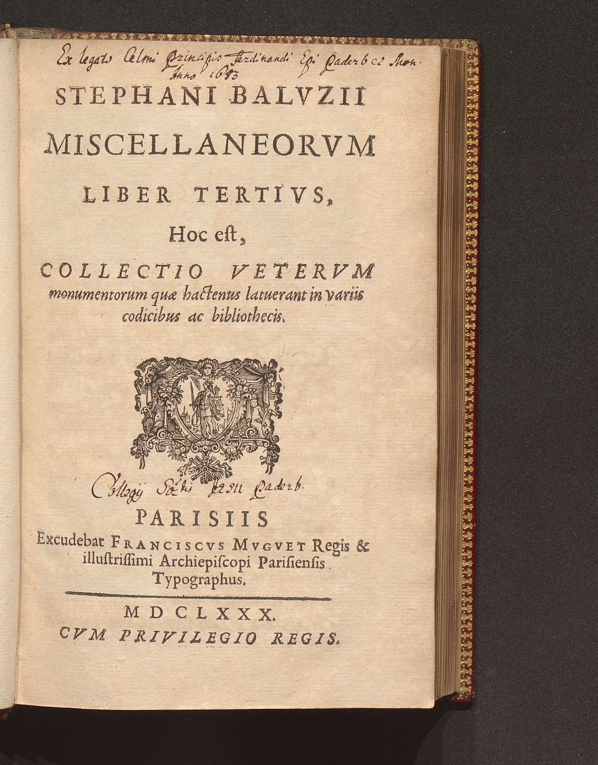 Stephani Balvzii Miscellaneorvm Liber ... Hoc est, Collectio Vetervm monumentorum,[...]