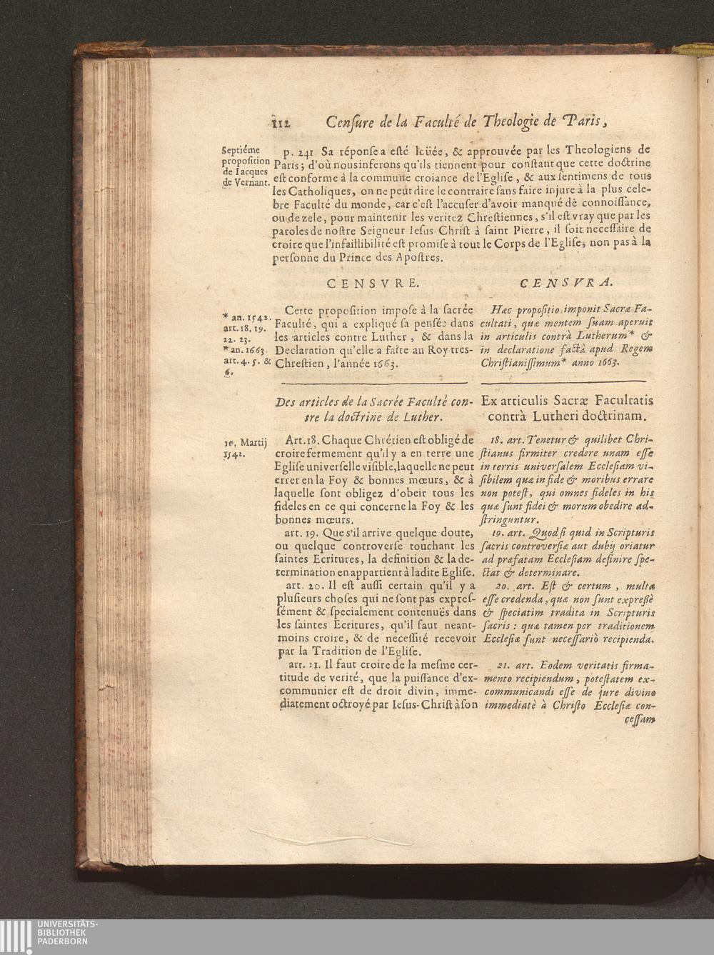 Censvra Sacræ Facvltatis Theologiæ Parisiensis, In Librum cui titulus est: La Défense de l'authorité de N. S. P. le Pape, ..., contre les erreurs de ce temps, Par Iacqves De Vernant, à Mets, 1658 : Confirmata Ex Scriptvris Sacris, Conciliorum gestis & Canonibus ... / Operâ ac studio quorumdam Theologorum Parisiensium