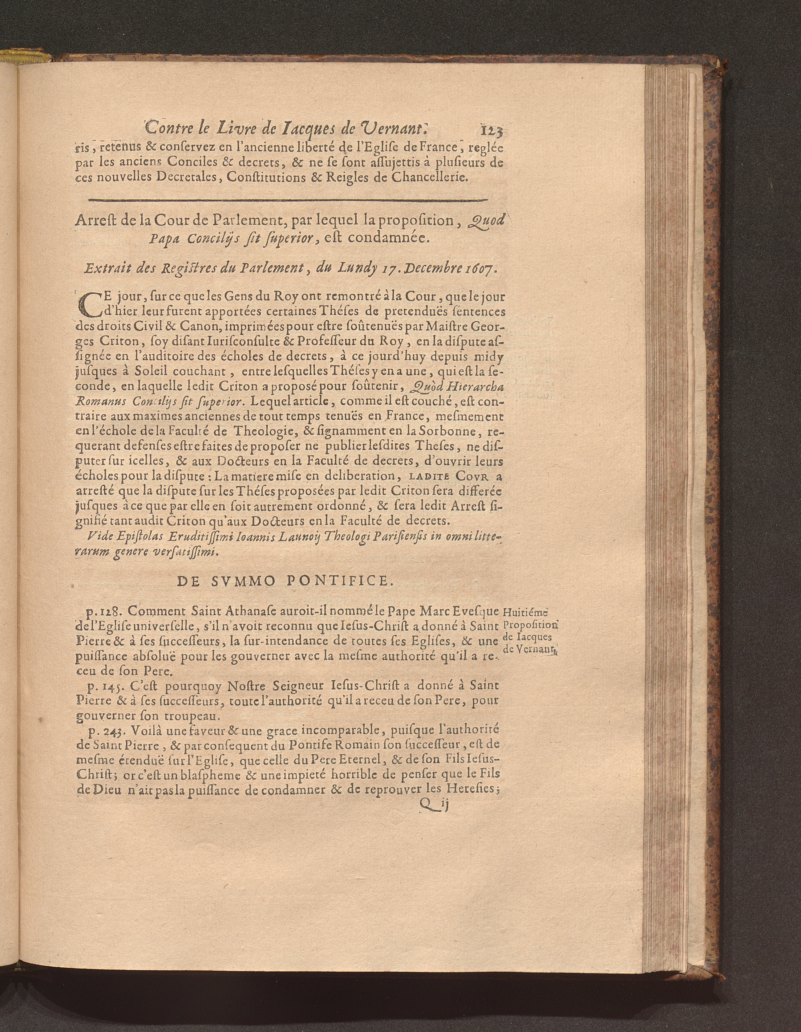 Censvra Sacræ Facvltatis Theologiæ Parisiensis, In Librum cui titulus est: La Défense de l'authorité de N. S. P. le Pape, ..., contre les erreurs de ce temps, Par Iacqves De Vernant, à Mets, 1658 : Confirmata Ex Scriptvris Sacris, Conciliorum gestis & Canonibus ... / Operâ ac studio quorumdam Theologorum Parisiensium