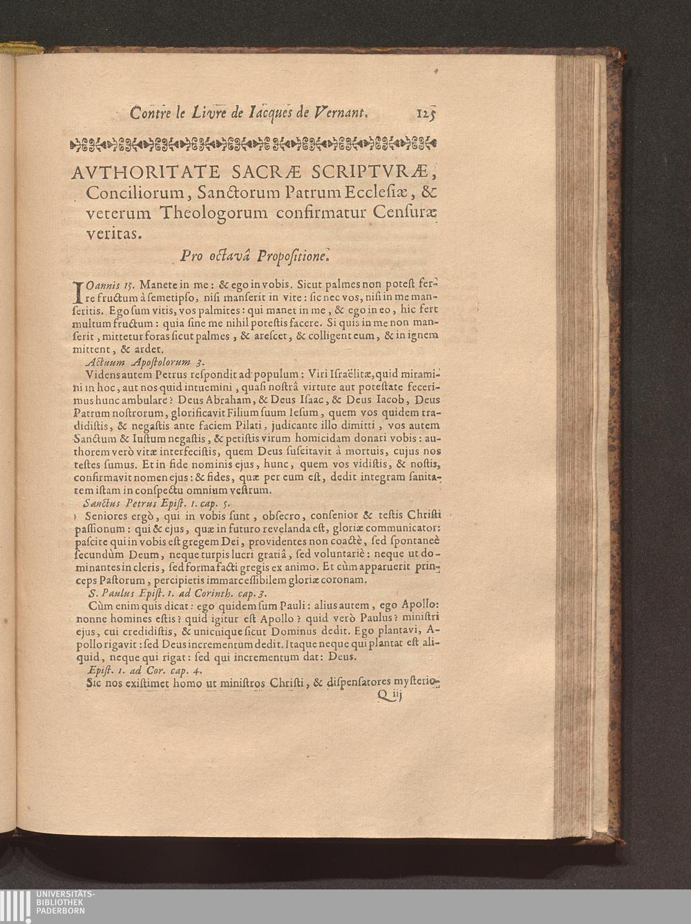 Censvra Sacræ Facvltatis Theologiæ Parisiensis, In Librum cui titulus est: La Défense de l'authorité de N. S. P. le Pape, ..., contre les erreurs de ce temps, Par Iacqves De Vernant, à Mets, 1658 : Confirmata Ex Scriptvris Sacris, Conciliorum gestis & Canonibus ... / Operâ ac studio quorumdam Theologorum Parisiensium