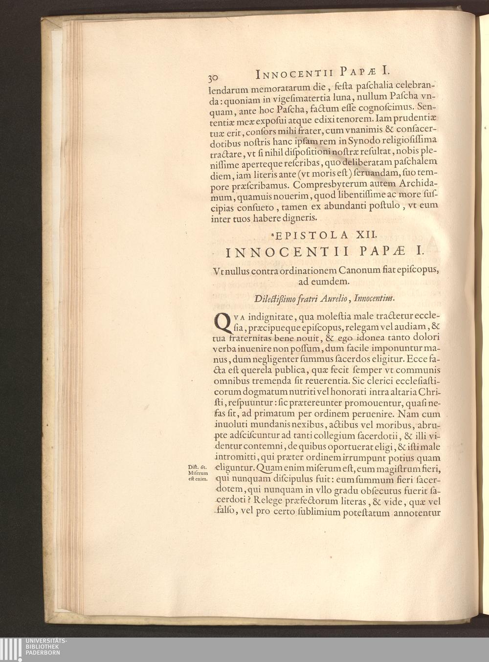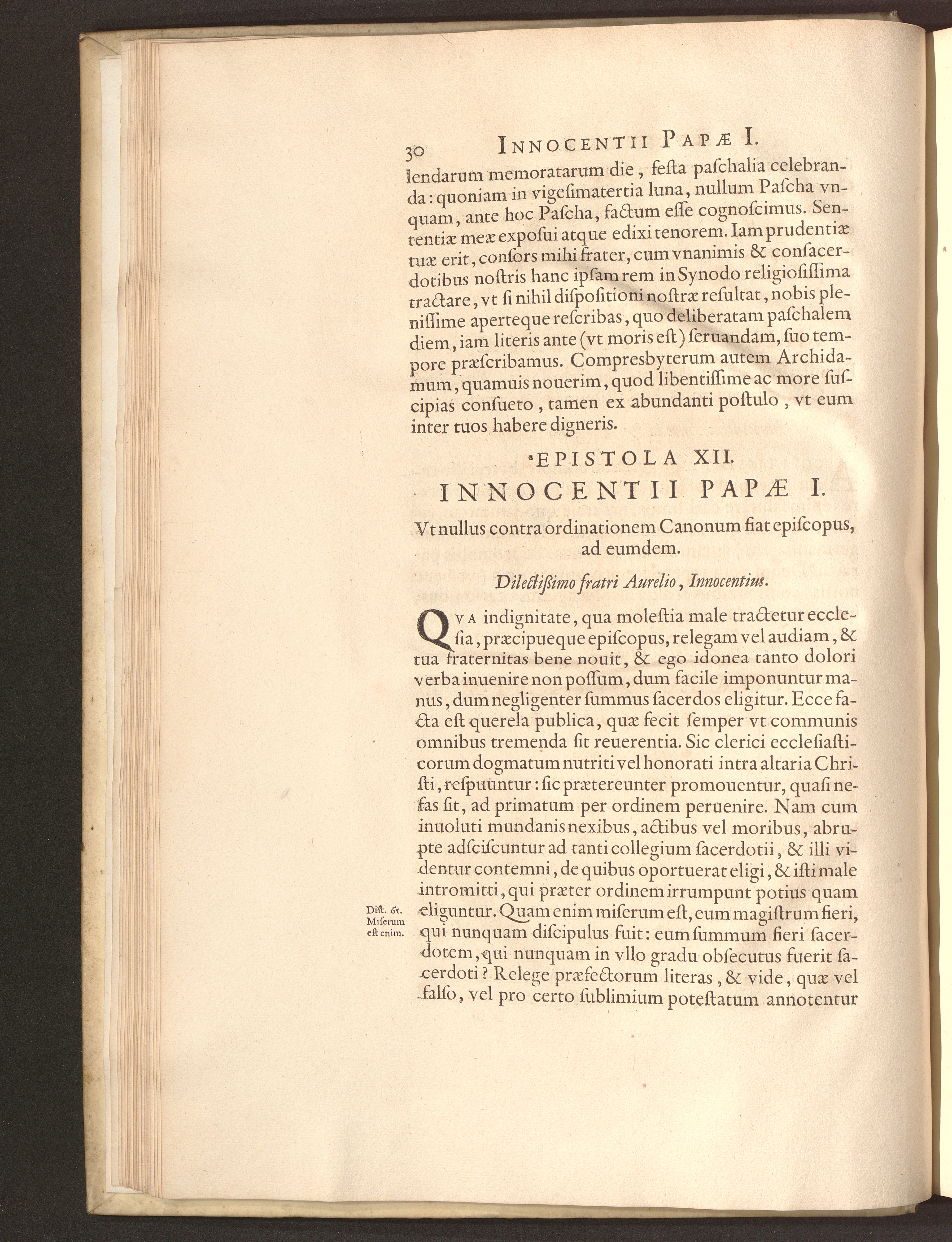 Epistola XII. Innocentii Papae I. Vt nullus contra ordinationem Canonum fiat episcopus,[...]
