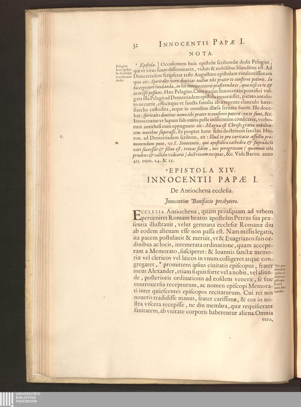 Epistola XIV. Innocentii Papae I. De Antiochena ecclesia.