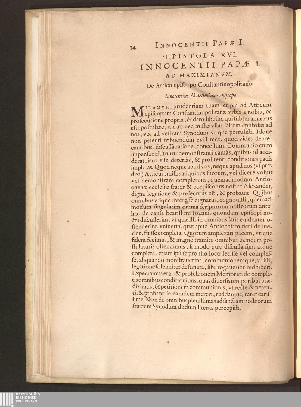 Epistola XVI. Innocentii Papae I. Ad Maximianvm. De Atttico episcopo Constantino[...]