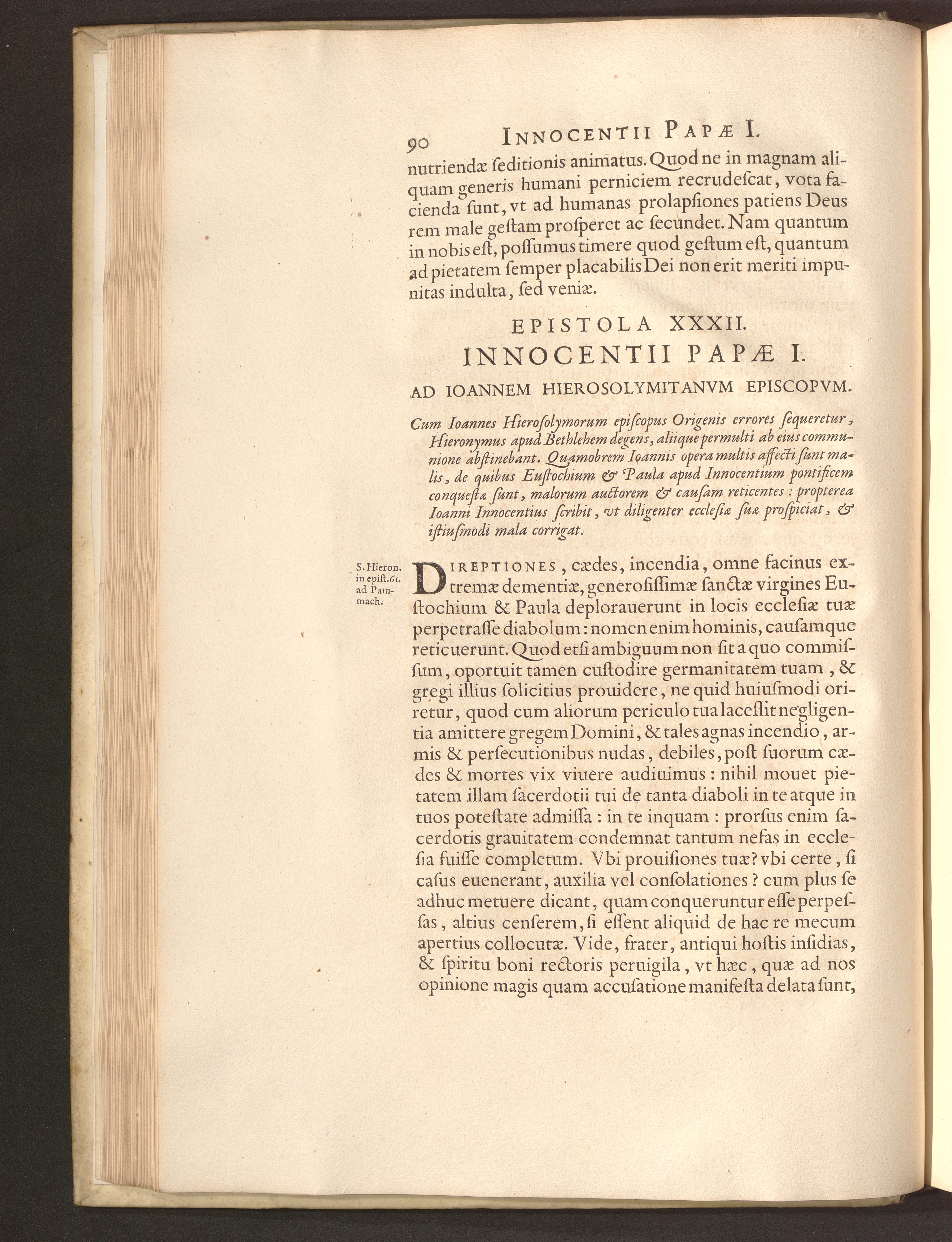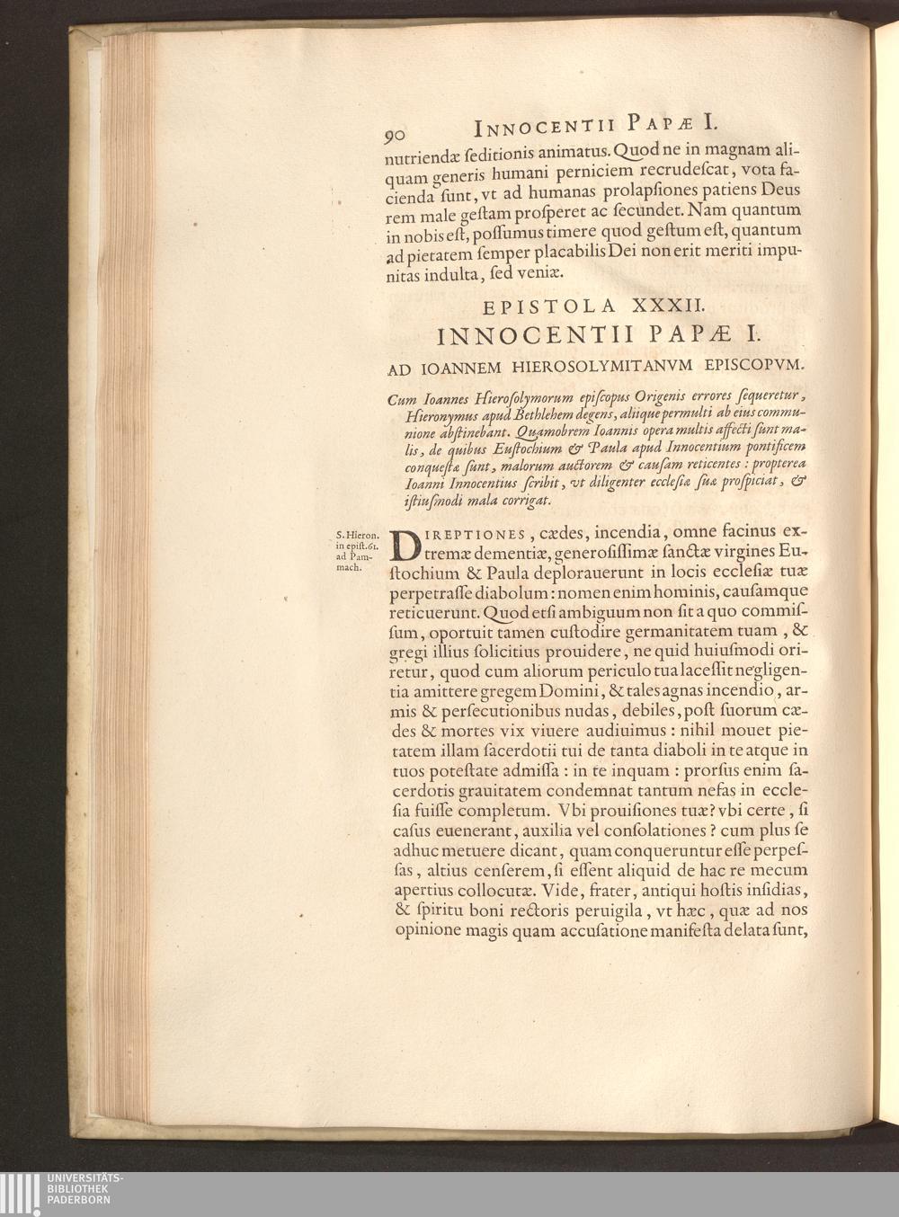 Epistola XXXII. Innocentii Papae I. Ad Ioannem Hierosolymitanvm Episcopvm.