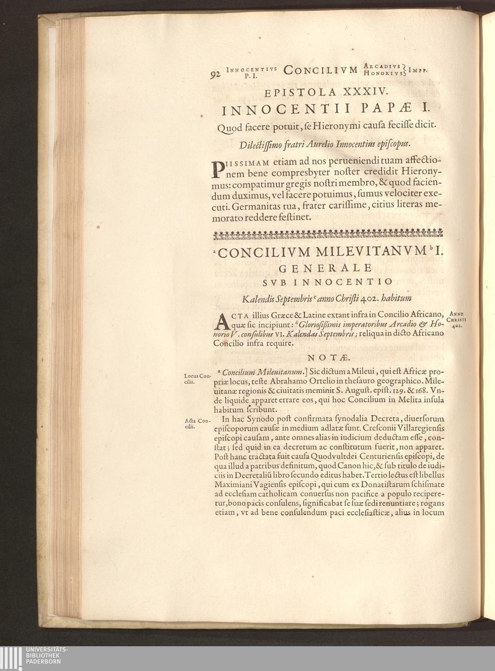 Concilivm Milevitanvm I. Generale Svb Innocentio Kalendis Septembris anno Christi[...]