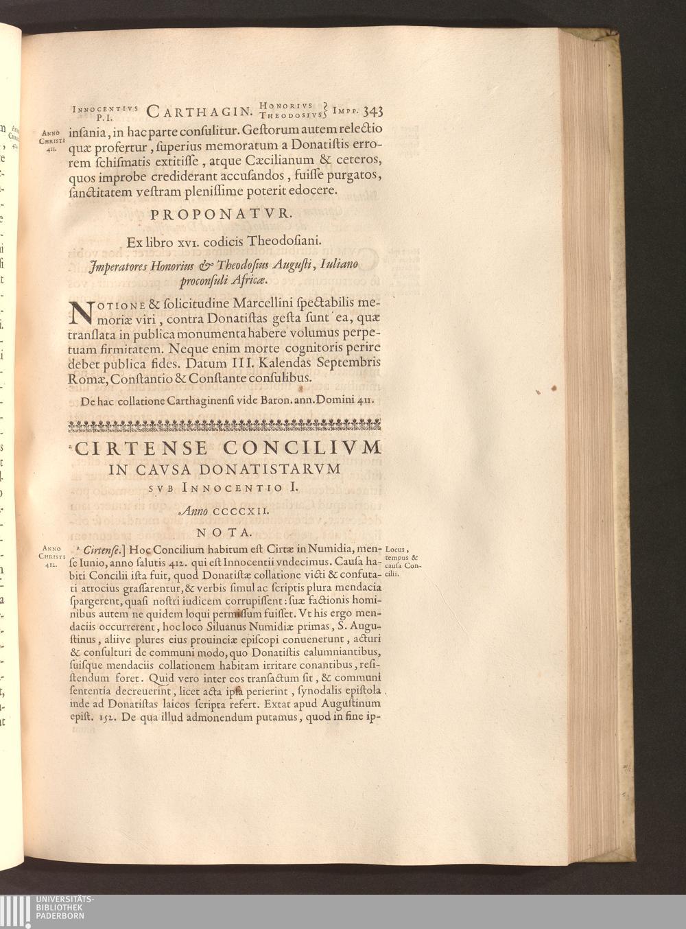 Cirtense Concilivm In Cavsa Donatistarvm Svb Innocentio I. Anno CCCCXII.