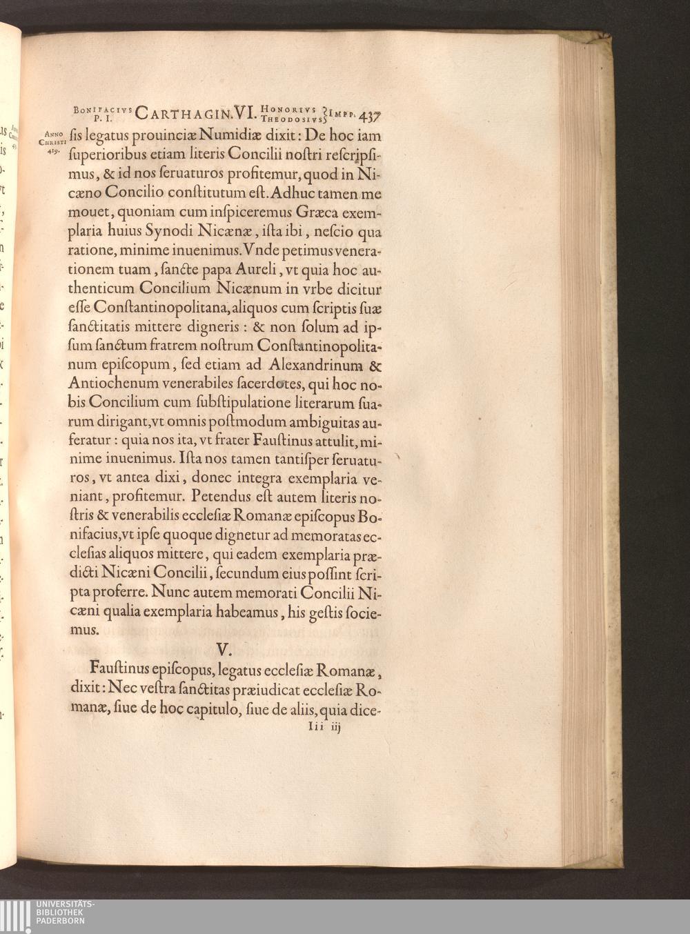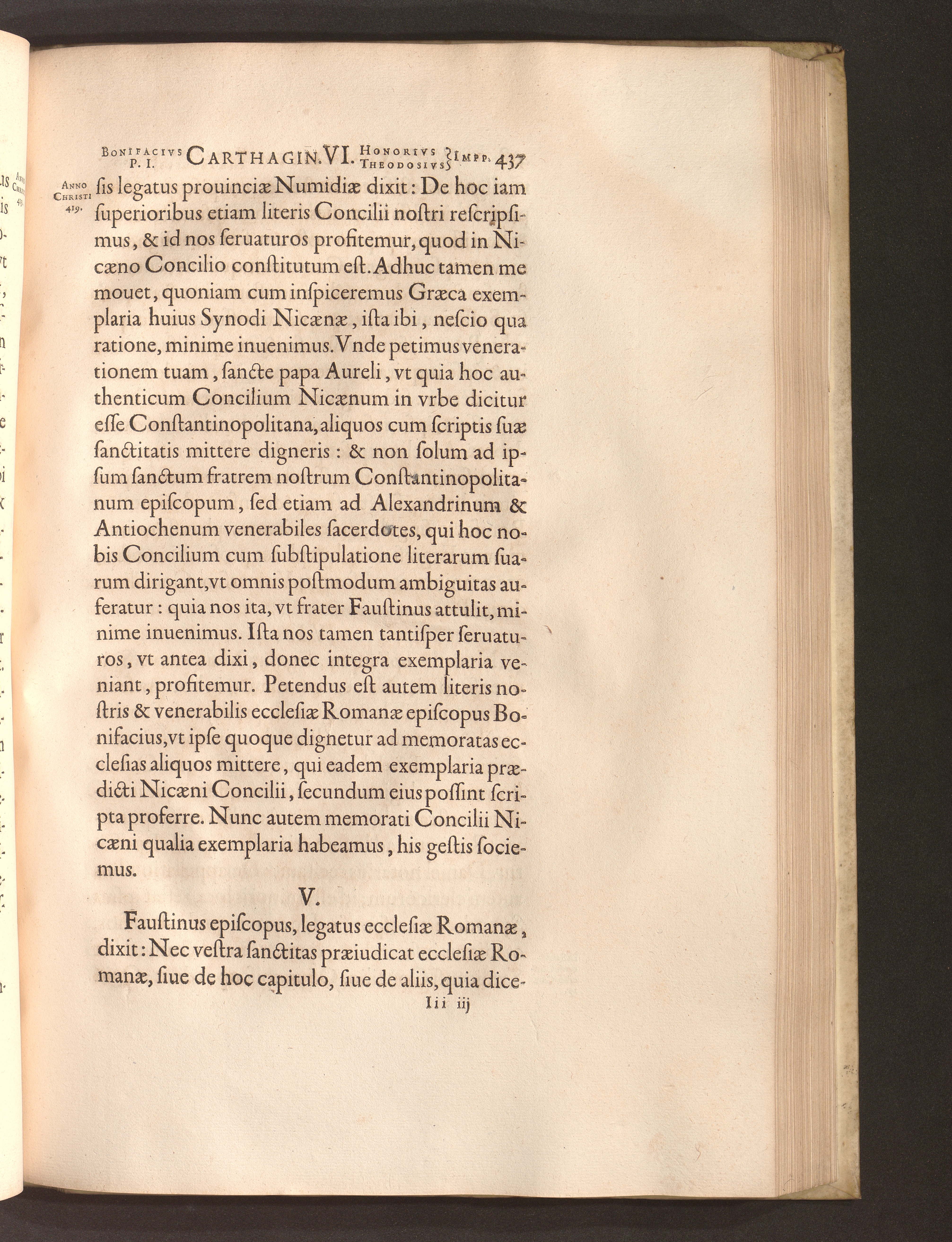 V. Vbi Faustinus episcopus dixit: vt Romano papae Synodus, pro inquirenda Nicaenae[...]