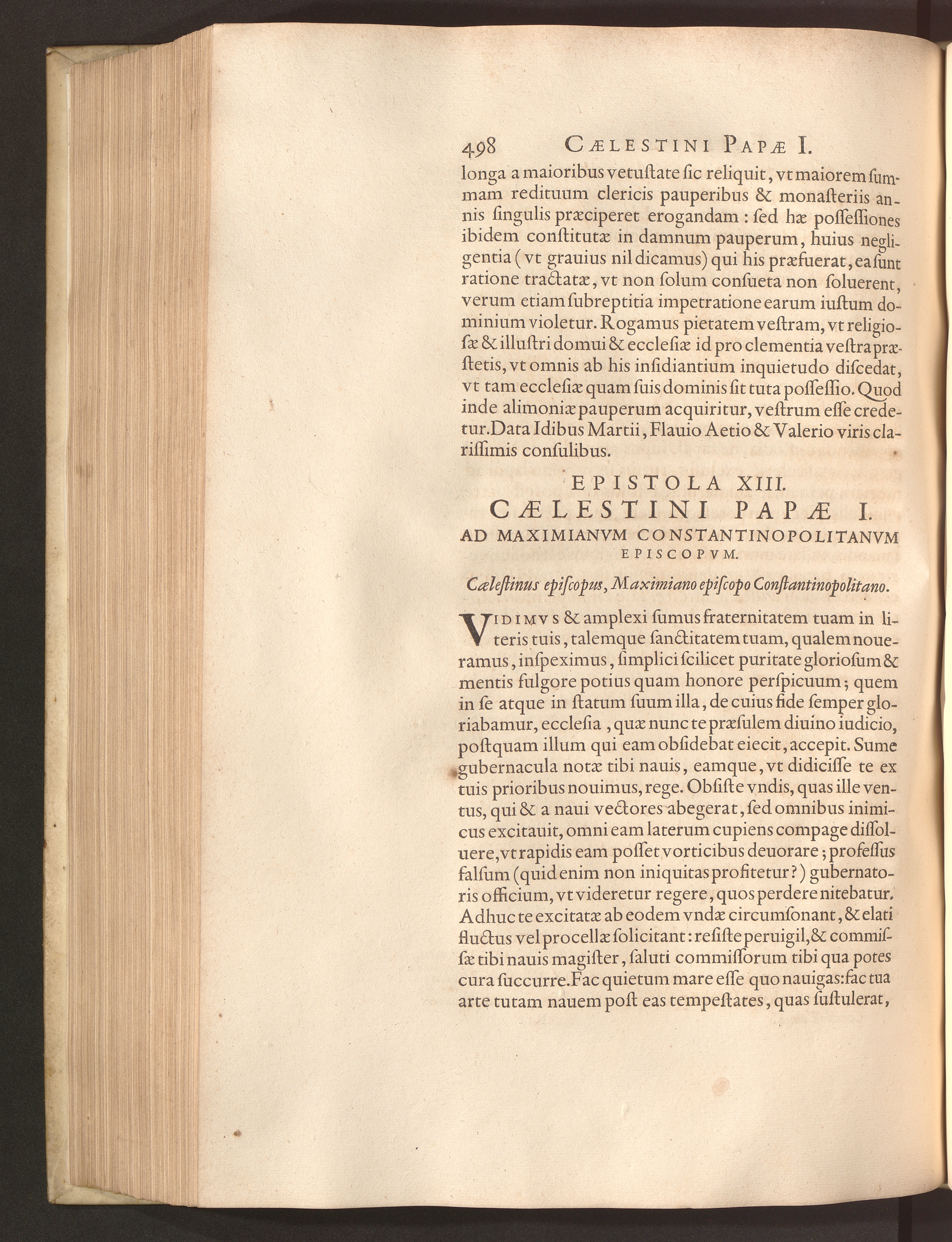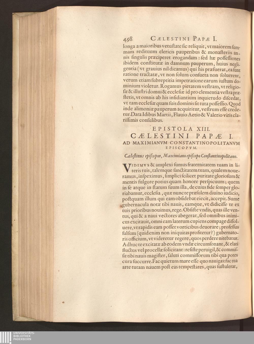 Epistola XIII. Caelestini Papae I. Ad Maximianvm Constantinopolitanvm Episcopvm.