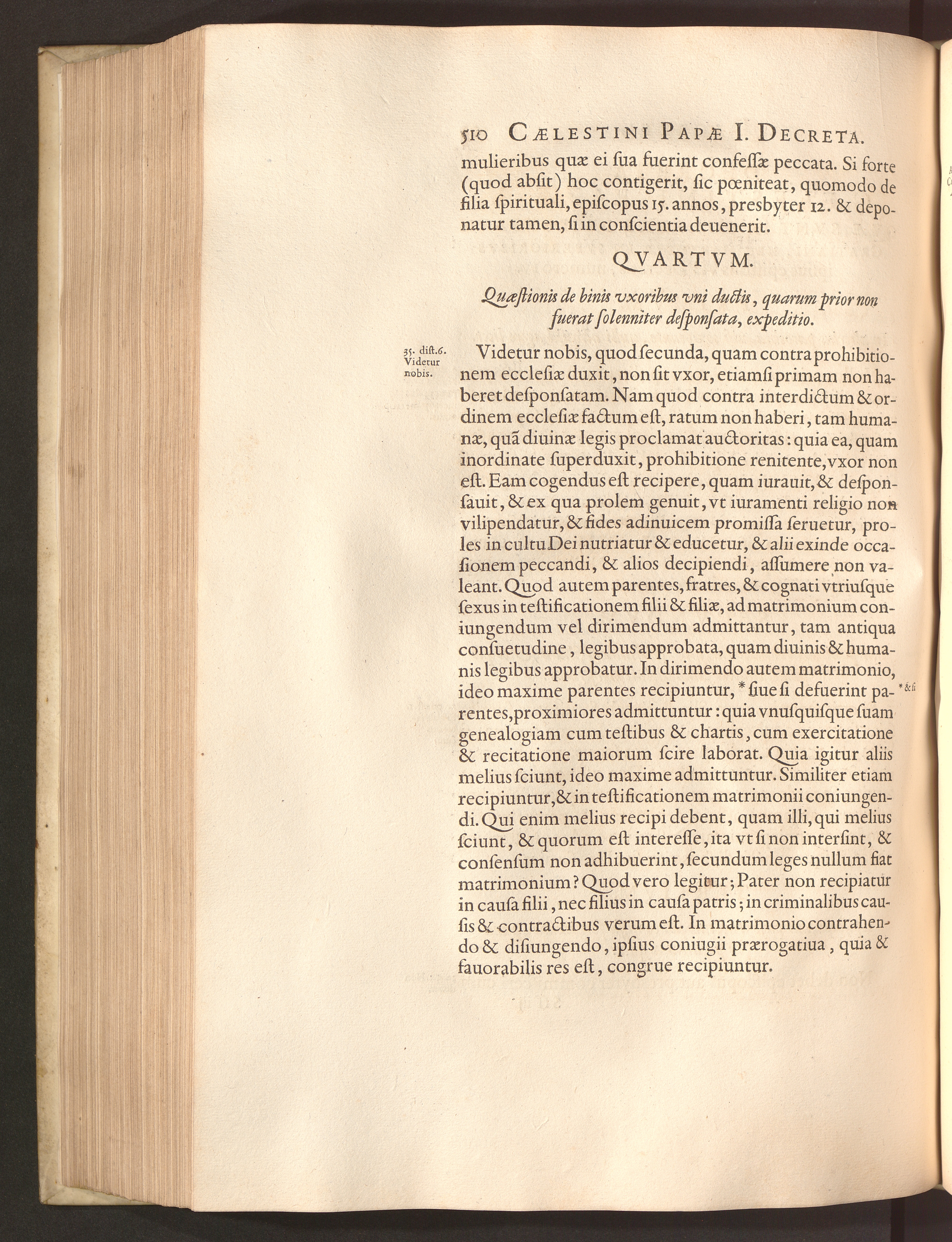 Qvartvm. Quaestionis de binis vxoribus vni ductis, quarum prior non fuerat solenniter[...]